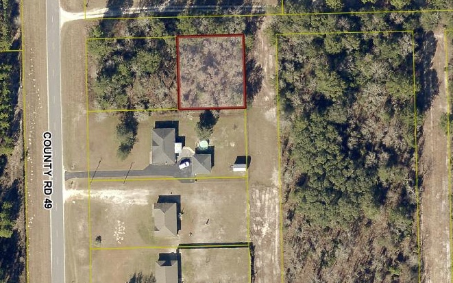 This wooded property is in the Suwannee Heights Subdivision, which is located between Branford and Lake City. It is located just off the paved Highway 49.