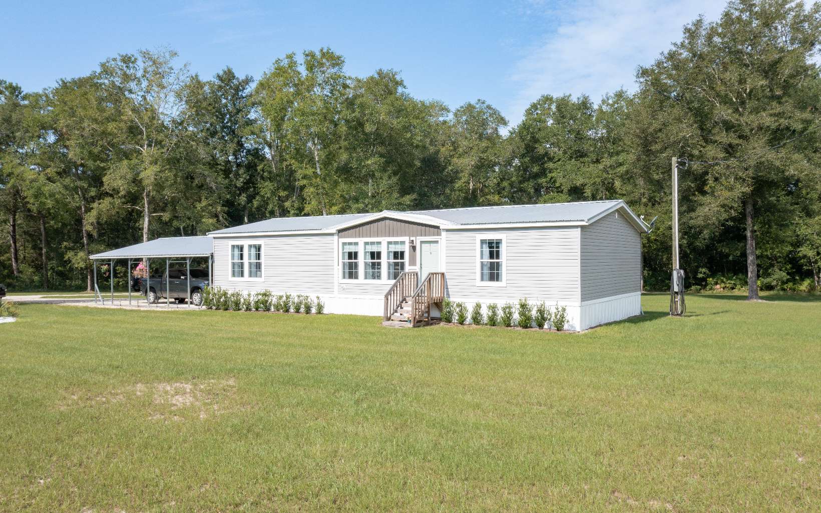 Perfect spot to lay your head at night in beautiful North Florida! New home on a beautiful 9.7-acre property with some gorgeous trees! Take a drive down the lime rocked driveway to the beautiful barely lived in three-bedroom, two-bath home with a large open floorplan that includes a beautiful island kitchen with custom tile backsplash, large open living room, tape and textured walls throughout, freshly painted throughout with scuff resistant paint, Rain Soft water purification system and a 28x31 carport. Take the lime rock drive past the home to a secluded cleared area that has a shed with a 42x26 metal building perfect for your RV, boat, and plenty of storage for all your toys. This home is only 1.7 miles from the boat ramp to head upriver on the Santa Fe or go downriver on the Historic Suwannee River or head out to enjoy the many natural springs nearby. Buyer couldn't sell their home, so home is back on the market ready for a new buyer!