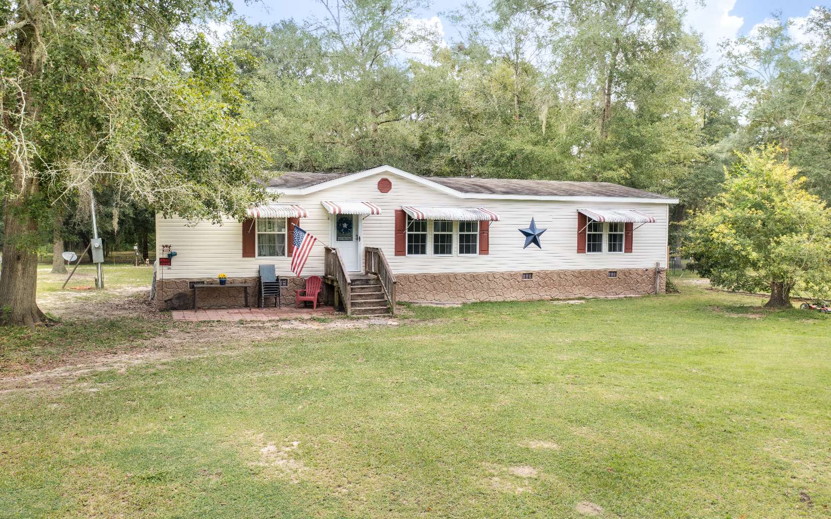 Beautiful 3 Bed 2 Bath Home on high ground. Built in 2013 on 5 acres with small pond in the front. 10 minutes from Lake City. New insulated windows 2022, A/C is 2019. New wood laminate floors. 2 Sheds, chicken coup and run area. 2 fenced dog areas. Scattered large oaks and green grass for landscape. Bring your horses and cows. Fully fenced in 2019.