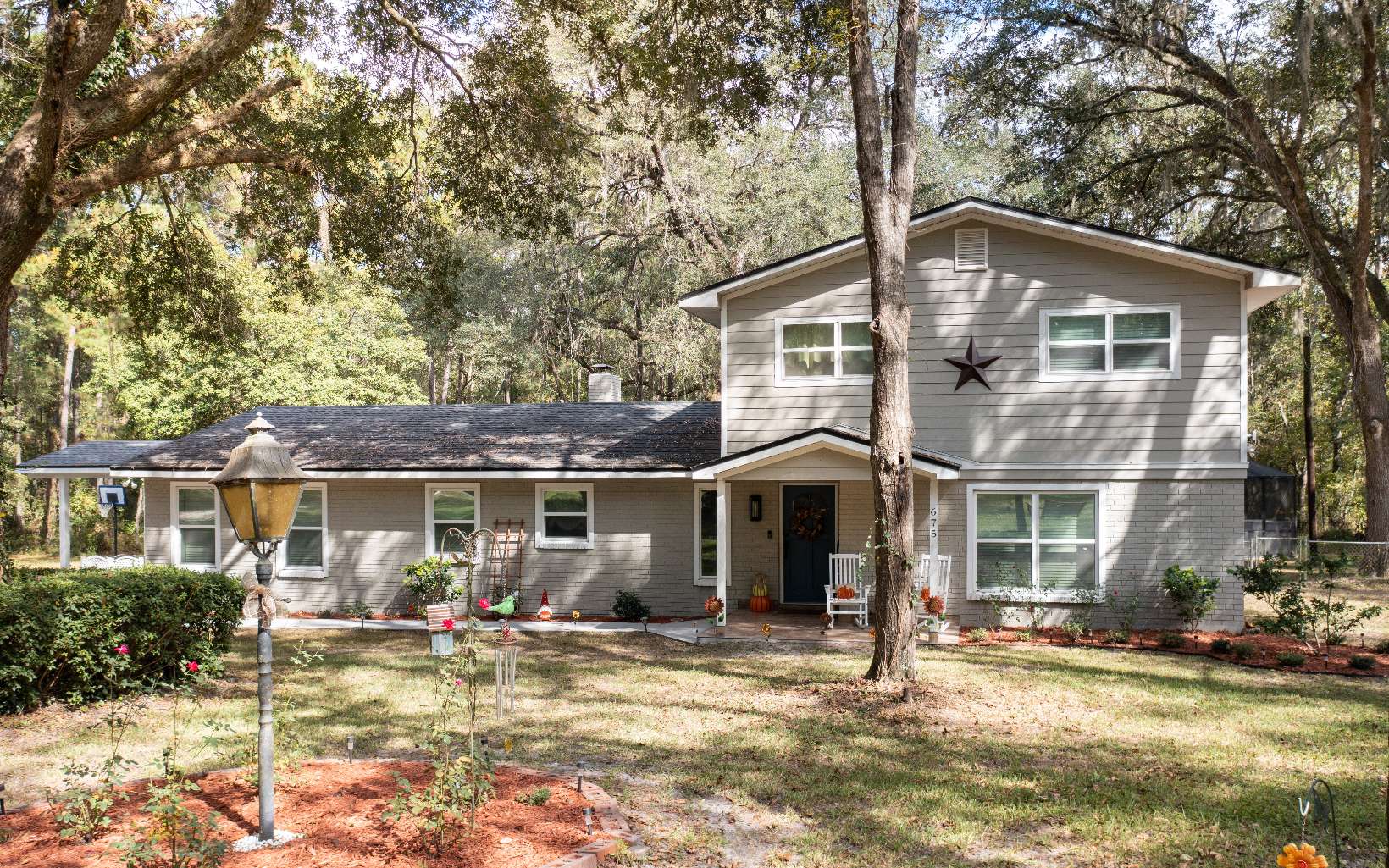 Spacious and beautifully renovated home on 5 partially wooded acres with a screened in ground pool!! Everything has been redone! New roof in 2018, tile flooring, a/c, appliances, cabinetry and counter tops, carpet, you name it!! Includes 1 1/2 stories with two bedrooms a full bath and play area upstairs and a third bedroom and master downstairs. Generous living and dining areas, a sitting area with fireplace, and a large mud room off the back. Excellent sand and salt system for the pool with new sand just added and a brand new pool liner! Quiet graded road, very close to town. Home is on FPL so the bill is very low and has a well and septic so no water or sewage!! Includes ring door bell, solar floodlights, keyless front entry, and a new monitored security system!