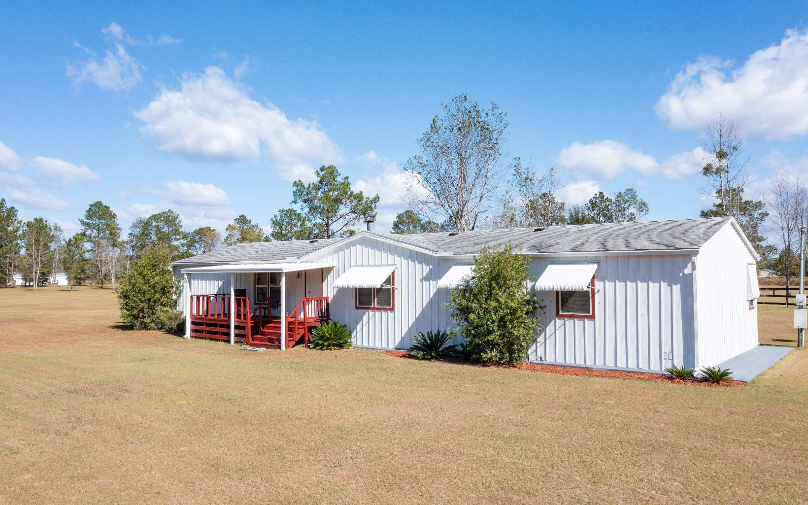 This updated cedar-sided home in Live Oak on 10.23 acres provides privacy and seclusion. This home boasts newer flooring, windows, an HVAC unit, and an updated kitchen with stainless steel appliances and renovated cabinetry. A double-sided wood-burning fireplace can provide heat to the whole family whether you're in the living room or family room. Parking and storage is no issue here with multiple RV carports, three traditional carports, and a shed. Spend your days relaxing on one of the three covered patios on the property, and dont worry about moving as the home is being sold mostly furnished with the exception of sentimental family property.