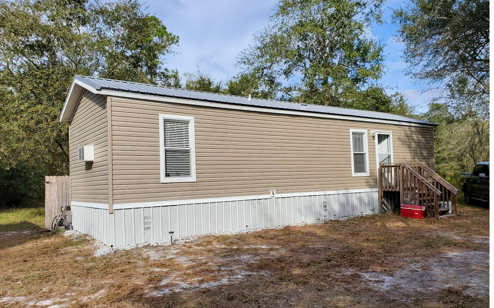 Turn key hunting camp!! 2 bedroom, 1 bath manufactured home with detached out building that has guest quarters and storage area on a concrete slab. Property has a well and septic. No electric, so bring your generator. Approximately 1 mile from electric. 105.62 acres with planted pines and hardwoods. Big bucks on this property. The entrance to the property is gated and surrounded by over 600,000 acres of land.