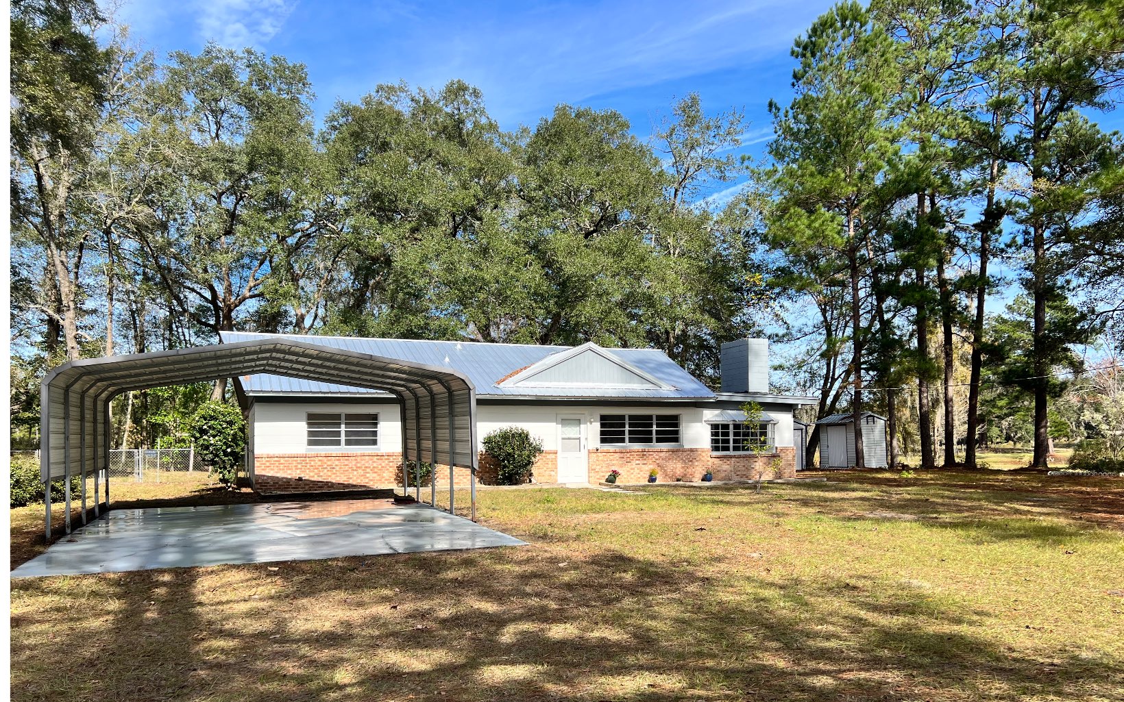 3 bedroom 2 bath on 2.4 acres Just minutes from Live Oak . This home features Brand new Kitchen with Custom island. Quartz Countertops . New Stainless appliances. Whole house has new Luxury Vinyl plank Flooring. New baseboards and Interior Doors. All new lighting and Ceiling fans. Guest Bathroom features all new tile and new Tub. Master bath has New large walk in Luxury tile Shower with Bench. Home also has bonus room off the Kitchen for home office or craft room. Newer Metal Roof Property also includes 2 Storage sheds . Back yard has a chain link area fenced in already for Pets . Large established trees make for a Pretty yard. No deed restrictions FHA and VA offers welcome Motivated Seller No HOA Home is wired for a Generator . New Survey and Title work is done for quick closing. Realtor owned