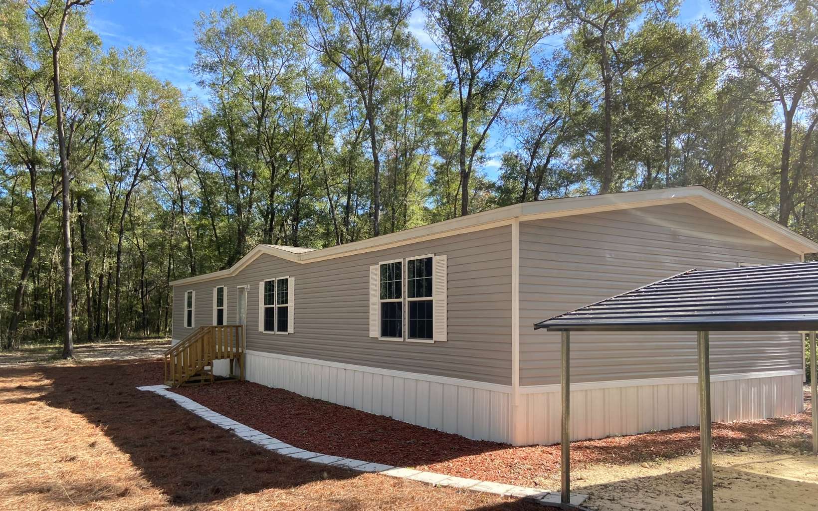 Motivated Seller! This home is now listed well below the recent appraised value! Brand New MH. 5/3 Champion Model. Fenced secure Front Entrance. Located on a quiet peaceful wooded 1.6 acre tract of land located. Paved road access with new well & septic. Very open and spacious floor plan with lots of storage space. Dining Room and Formal Living Room. Large Kitchen for the cooks in the Family with a kitchen Island that's set up for entertaining! Large Master Bedroom and Bathroom. Garden Tub plus walk in shower in master. Lots of upgrades with crown molding and side by side refrigerator. Quick trip to Jonesville, Newberry and Trenton. Lime rock driveway in front with a your a new metal two car carport. Gated Entrance. Private and secure. Open split floor plan with all hard surface flooring. The upgrades with this home will surprise you. This looks great with our signature red mulch and stepping stones! Room dimensions are approximate and should be verified. Some photos are virtually staged. OWNER/AGENT