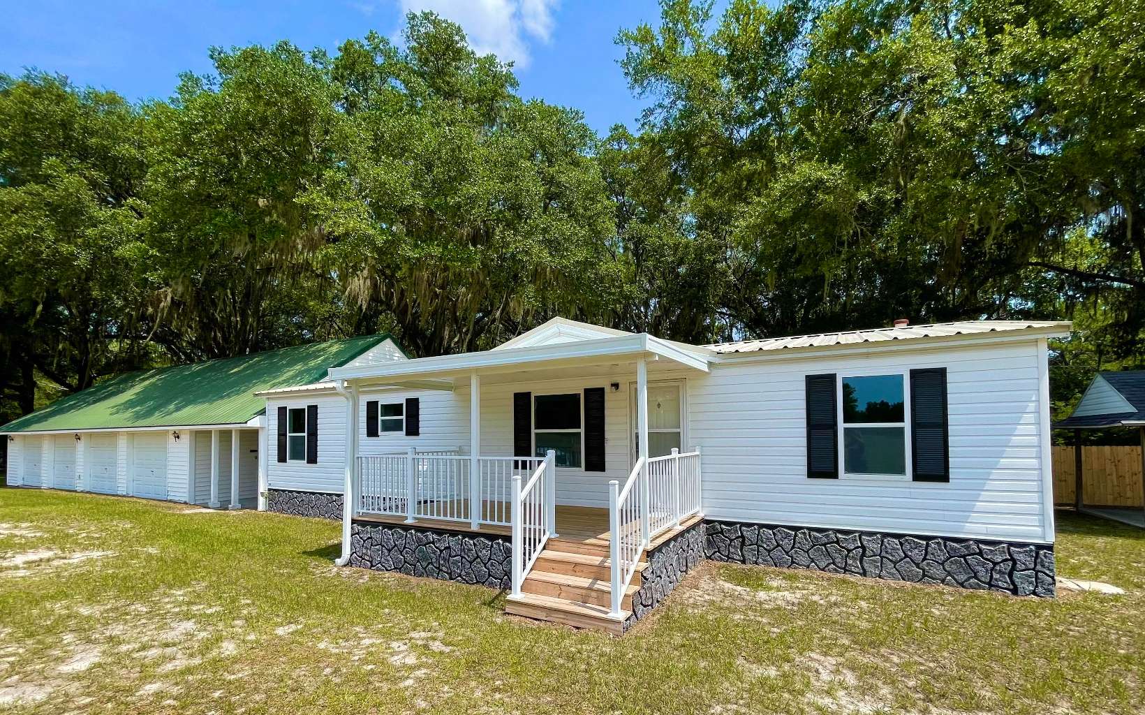COMPLETELY UPDATED WITH EXTRA LARGE GARAGE to store all your things! Welcome home to this home on 5 beautifully cleared acres with a few scattered Live Oaks for shade. 3br/2ba completely updated DW manufactured home,new flooring,new kitchen,new SS appliances, metal roof, new AC & heat,wood burning fireplace. 26x50 Garage is connected to the house with covered breezeway, it has 4 bay doors,completely finished out on the inside with a large bonus room upstairs,a bathroom,and a storage room. Bring your tractor, boat,antique cars,horses,chickens this place is move-in ready! No HOA & no flood zone! SELLER MOTIVATED MAKE OFFER *Engineering Certification Attached