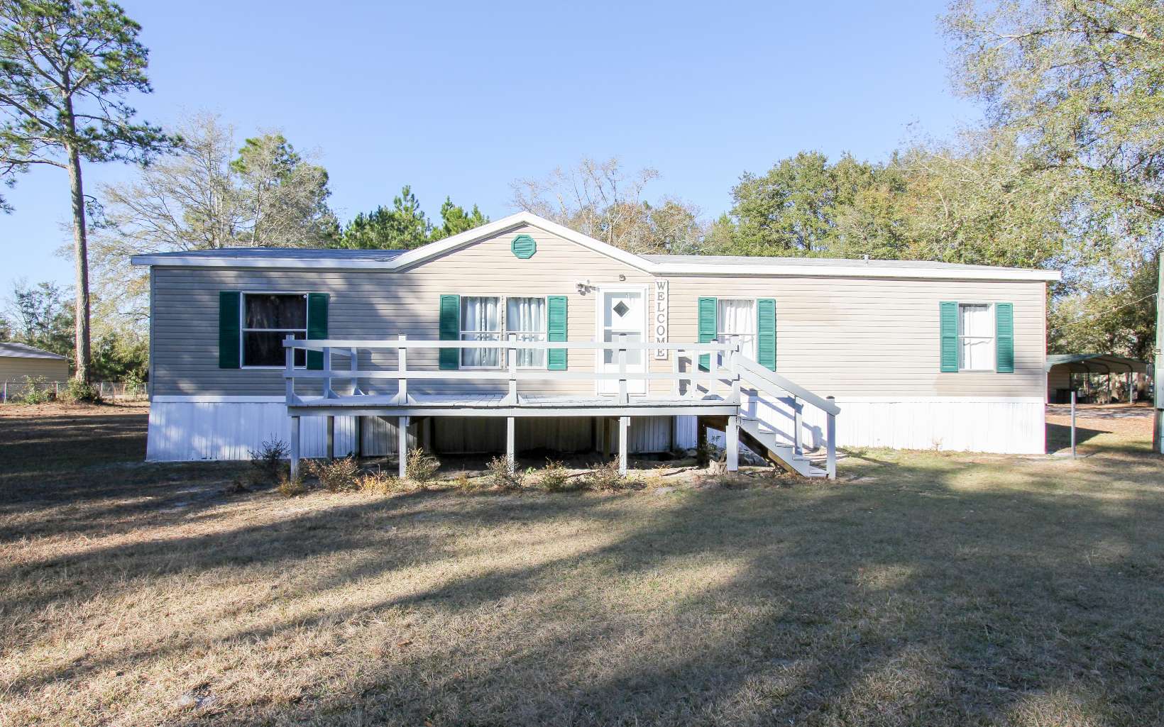 Updated Manufactured Home in North Florida! Located on a fenced acre just outside of town. No deed restrictions. No HOA. Cozy wood-burning fireplace. Split floor plan. Walk-in Closets. New shingle roof. Large island in Kitchen. Vinyl flooring throughout. Detached double carport. Front & back decks. Freshly painted. Take a look today!
