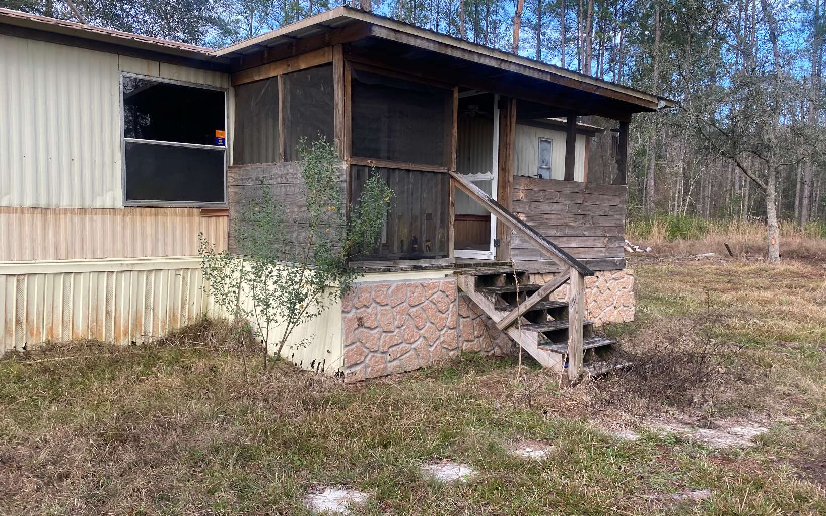 1987-2/2 singlewide on 1.84 acres with 924 sq feet. It has a metal roof over and solid floors. One of a kind Handyman special needs a lot of TLC.