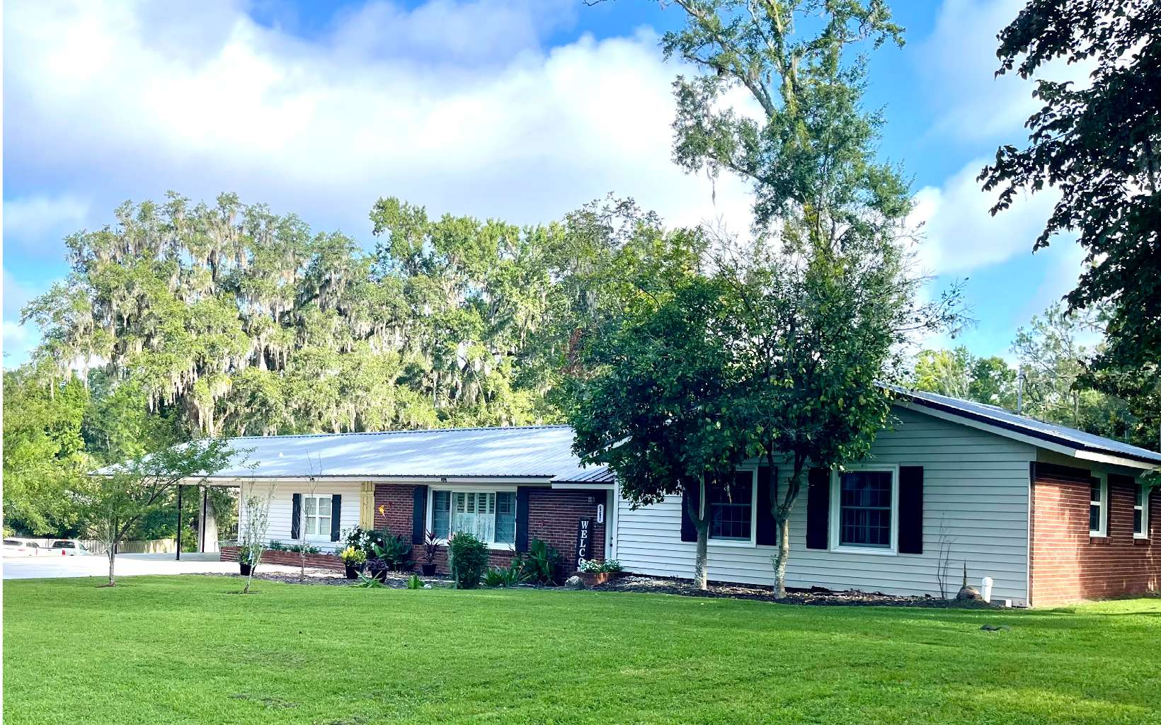 NEWLY RENOVATED and a HOME WARRANTY!! You must see this 4BR/3BA brick home with an open floor plan located in town. Over 2000 sq ft of living space, a two car carport and a 16 x 20 workshop in the fenced back yard, space is abundant. This home offers you a choice, as two of the four bedrooms are considered primary with private baths. For privacy, each of the primary bedrooms are located on opposite ends of the house. The home features the following: Metal Roof (2015), HVAC (2018), updated insulated windows, whole house, commercial rated tank-less gas water heater, all new LED lighting in the great room and kitchen area, custom epoxy kitchen counter tops, new refrigerator and dishwasher, a gas stove, and new luxury vinyl plank in most of the house. Being situated on a corner lot with a circle drive. Convenient location to schools, shopping, and an easy commute to I-10 and I-75 for those who commute to Gainesville or Jacksonville.