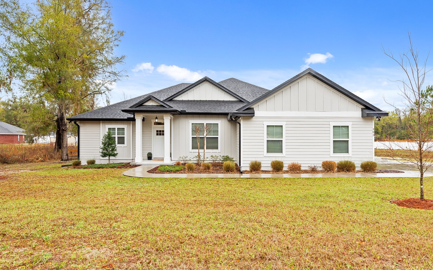 Beautiful suburb home located in Emerald Cove of Lake City, FL. On the outskirts of town providing that cozy, country feel yet the convenience of grocery, shopping, hospitals and schools just minutes away. This contemporary home is perfect for the commuter. Convenient drive to Lake City and Live Oak or hit I-75 to connect to Gainesville or Jacksonville in no time. The modern design features custom cabinets, pure white quartz countertops, built-in fireplace and custom closets with plenty of storage. The 4-bedroom home is move-in ready and boasts a master suite that will wrap you in serenity. For the outdoor lover, the spacious fenced backyard is already set up with a cozy firepit and 12'x24' workshop. This one checks all the boxes in the cove!