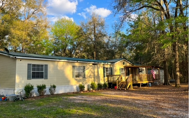 This home is a must-see! Huge doublewide home on one acre with many upgrades and features that you don't see often. Extra large kitchen, large island, stainless steel refrigerator, and tons of cabinet space. There is plenty of living space and room to host, or just personally enjoy. The primary bedroom has plenty of space for king size bed and furniture. Jack & Jill bathroom is attached to bedrooms 2 and 3. Bedroom 4 has its own side of the home for privacy or guestroom. Covered front and back deck. RV or shipping container does not convey.