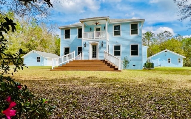2-STORY COUNTRY MANOR, POOL HOME has 5 BD/4BA and detached DBL GARAGE/WORKSHOP, as well as a GUEST HOME (1BD/1BA) & is situated on 10 ACRES in GILCHRIST county on a PAVED road in the middle of a private wooded oasis of natural growth oaks & pine trees. Majestic front porch is composite decking that lasts a lifetime. Welcoming entry is light & bright...1st floor includes dining room, large island kitchen w/ black stainless appliances, a walk-in pantry, utility room, a guest bd/office, full bath for guests, family room, & large sun room. Wooden staircase leads to 2nd floor bdrms & balcony porch. 2 guest bdrms upstairs have their own private baths & master bd/ba. Also, upstairs is a den/bonus room. Enjoy Florida weather year around w/fenced inground pool & deck area! Adjacent to pool is guest home (576sqft) that includes corner kitchen, living room, bdrm, & bath. Close to High Springs & Gainesville w/ several springs & state parks nearby! Gilchrist County offers great schools & low taxes!