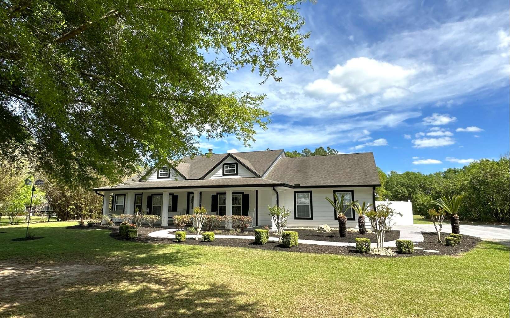 Welcome to your peaceful retreat just north of Alachua! This stunning 4-bedroom, 2-bathroom home is situated on a 1.3 ACRE lot and features an array of beautiful upgrades. As you step inside, you'll be greeted by a spacious living room that boasts high ceilings, natural light, and an inviting fireplace, perfect for cozy nights in. The adjacent dining area leads to a gorgeous kitchen that showcases granite countertops, stainless steel appliances, plenty of storage space & an additional eat-in space. The primary bedroom is a true sanctuary, complete with a walk-in closet and a luxurious en-suite bathroom featuring a dual vanity, soaking tub, and a separate walk-in shower. Three additional bedrooms offer ample space for family, guests, or a home office. Step outside to the expansive backyard, where you'll find a large screened patio that's perfect for entertaining or relaxing. The backyard, which boasts a large storage building with electricity, has plenty of room for gardening, playing, or even adding a pool. Located in a quiet neighborhood with NO HOA, this home offers the perfect balance of peaceful living and easy access to shopping, dining, and entertainment. With easy access to I-75 and a short drive to Gainesville or Lake City, this property is an ideal location for anyone seeking a serene lifestyle in a vibrant community. Don't miss out on the opportunity to make this beautiful home yours today!