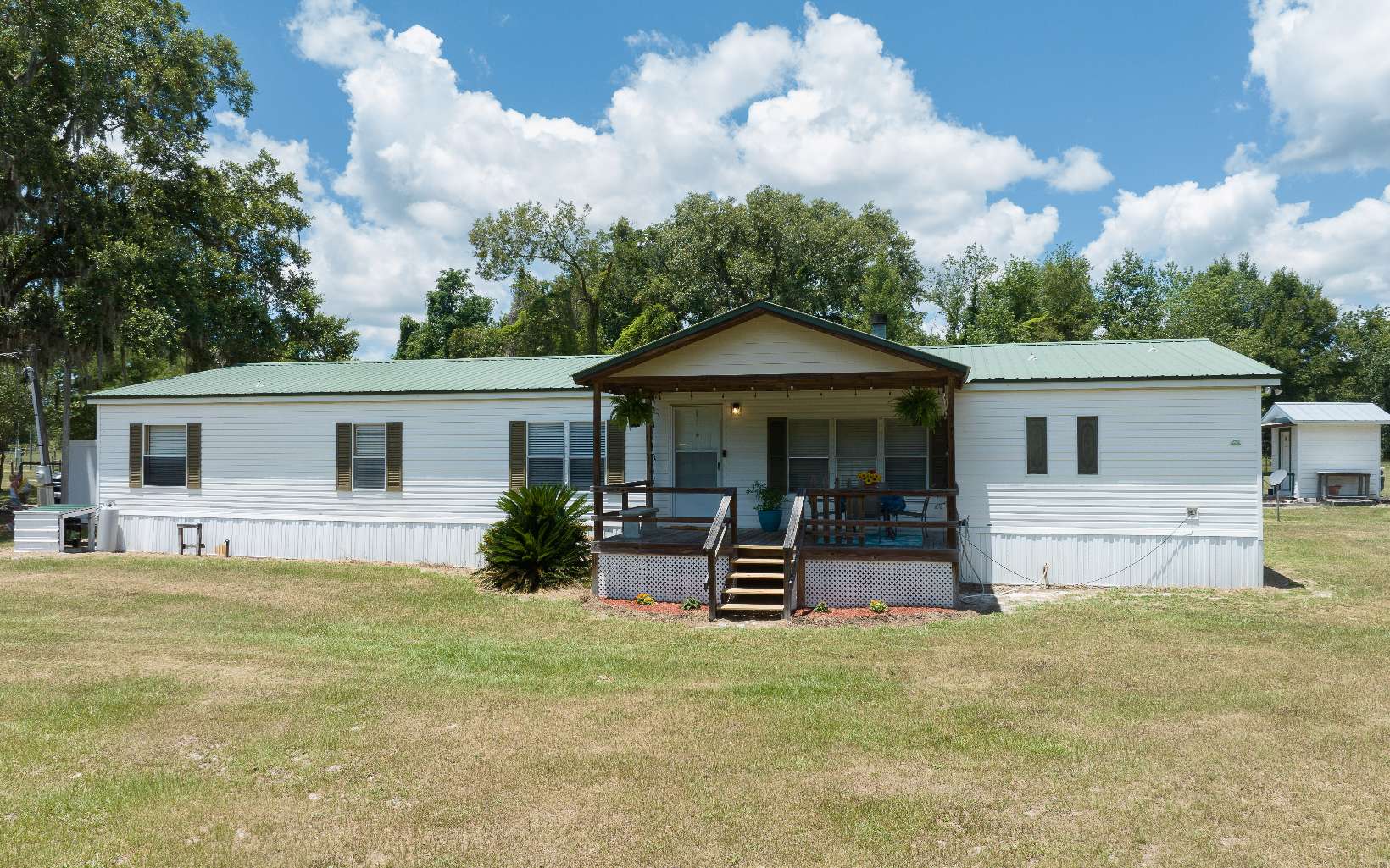 4 Bedroom, 2 bath Manufactured home on 10 acres with 3 paddocks, fenced and cross fenced with water. Separate RV hook up w/ 30 and 50 amp service and water. Two wells and two septic tanks. 42x44 barn with garage/workshop space, tack room and 3 stalls. Also plumbed to add a bathroom. Wood burning fireplace with built-ins in living area. Large family room off kitchen for gatherings in addition to the dining room. Perfectly set up for horses or other animals. Close to Oleno Horse Park, Santa Fe River and other recreational activities. Located on a private road. *When using GPS directions, enter Chalet from CR 138*