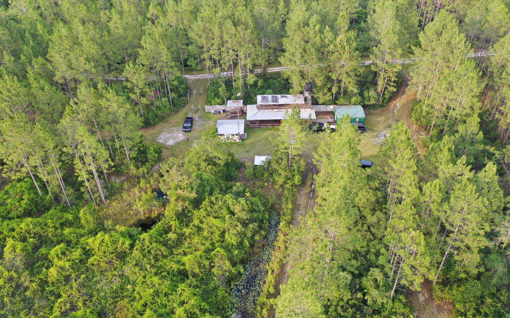 This is a turn key hunting camp. 5 stands and 5 feeders will remain with the land. One container that has been enclosed with a kitchen, bathroom and 2 bedrooms. A separate living room area with dining tables and beds for additional guest. A separate living quarters with 1 bedroom, bathroom and living room area. Trails throughout the property, Loaded with endless amounts of game. Electric is 15 miles away, but no worries as this place has a generator and solar panels. This is a very efficient "off-grid" camp. One tower stand that you can see 3 feeders from.