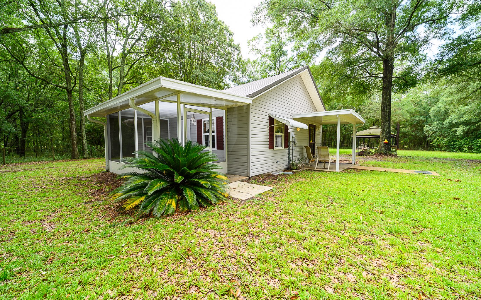 Welcome to a little slice of paradise in North Florida. This 2 bed, 1 bath home offers a serene & private setting, complete with fully fenced grounds with electric gate. Set against the backdrop of majestic, sprawling oaks, this property exudes a sense of tranquility & charm that will capture your heart. The open floor plan seamlessly connects the living area, dining space, & kitchen. The kitchen is compact yet functional. Two comfortable bedrooms share a hall bath. The screened in front porch is the perfect spot to sit & watch wildlife. Majestic oak trees provide ample shade & lend a touch of natural beauty to the landscape. If you have a passion for hobbies, crafts, or simply need extra storage space, you'll be delighted by the multiple storage buildings on the property. These can be used as workshops, studios, or even as a "man cave" or “she shed”. The possibilities are endless! Located in McAlpin, minutes from the Suwannee River and Little River Springs- you’re close enough to enjoy all North Florida has to offer! Just 15 minutes to Lake City, 12 minutes to Live Oak & 12 minutes to Branford, This home is close to all amenities. No flood zone & No restrictions. Seller will share all inspection reports with buyers- home inspection, well inspection and septic inspection. This home is move in ready!