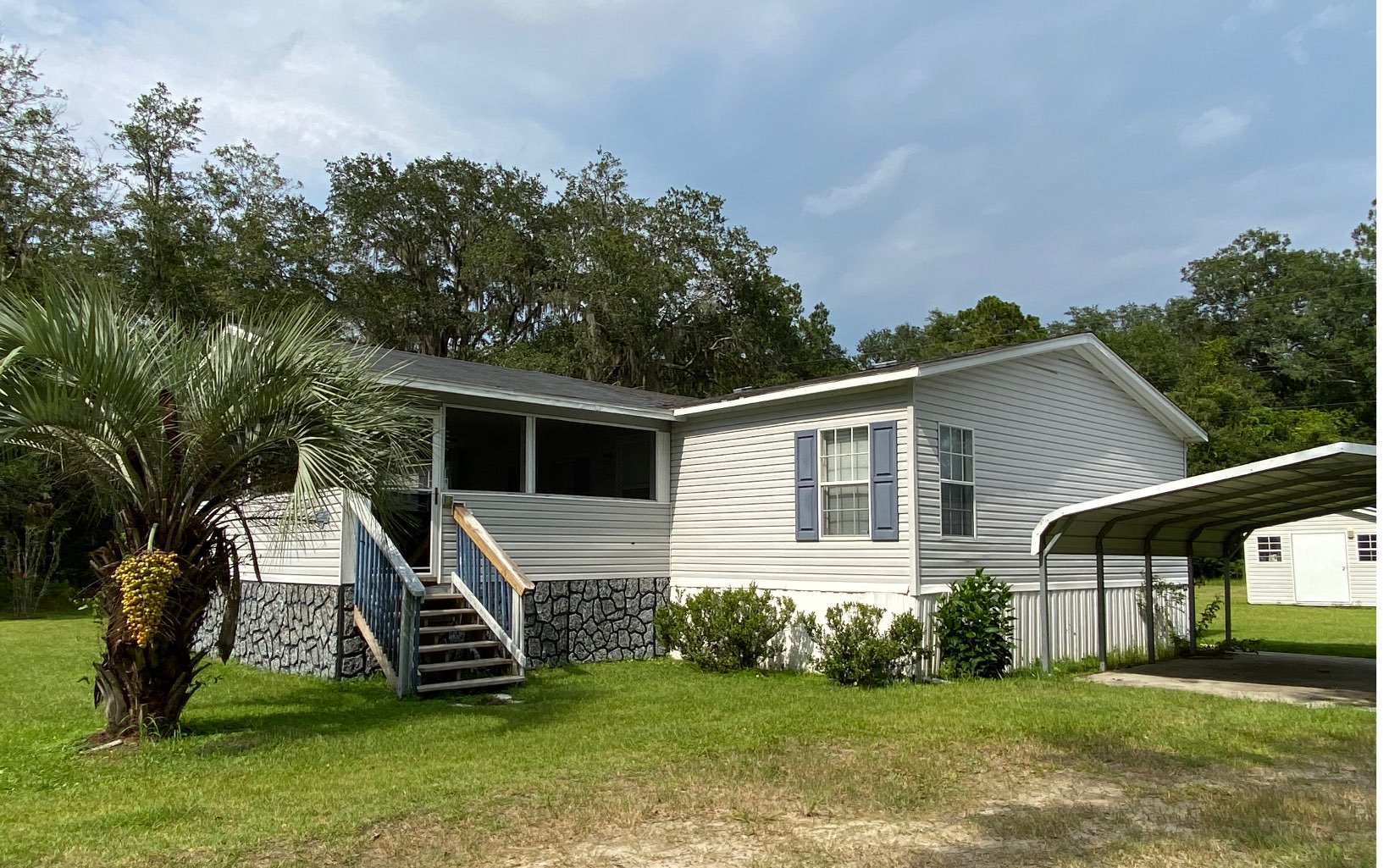 Welcome to this charming 3-bedroom, 2-bathroom home nestled on a full acre of land, conveniently located close to town. This home features over 1,500 sq ft of living space - with large rooms and a split floor plan. The property also includes an outdoor storage shed, offering additional space to store tools, equipment, or even transform it into a workshop or hobby area. The screened in porch will be a nice place to relax in the evenings or a great place to start the day with a nice cup of coffee. Located in close proximity to town, you'll enjoy the convenience of nearby amenities, including shopping, dining, and entertainment options - including the Spirit of the Suwannee Music Park. This property offers a peaceful retreat away from the hustle and bustle, providing the perfect balance between accessibility and serenity.