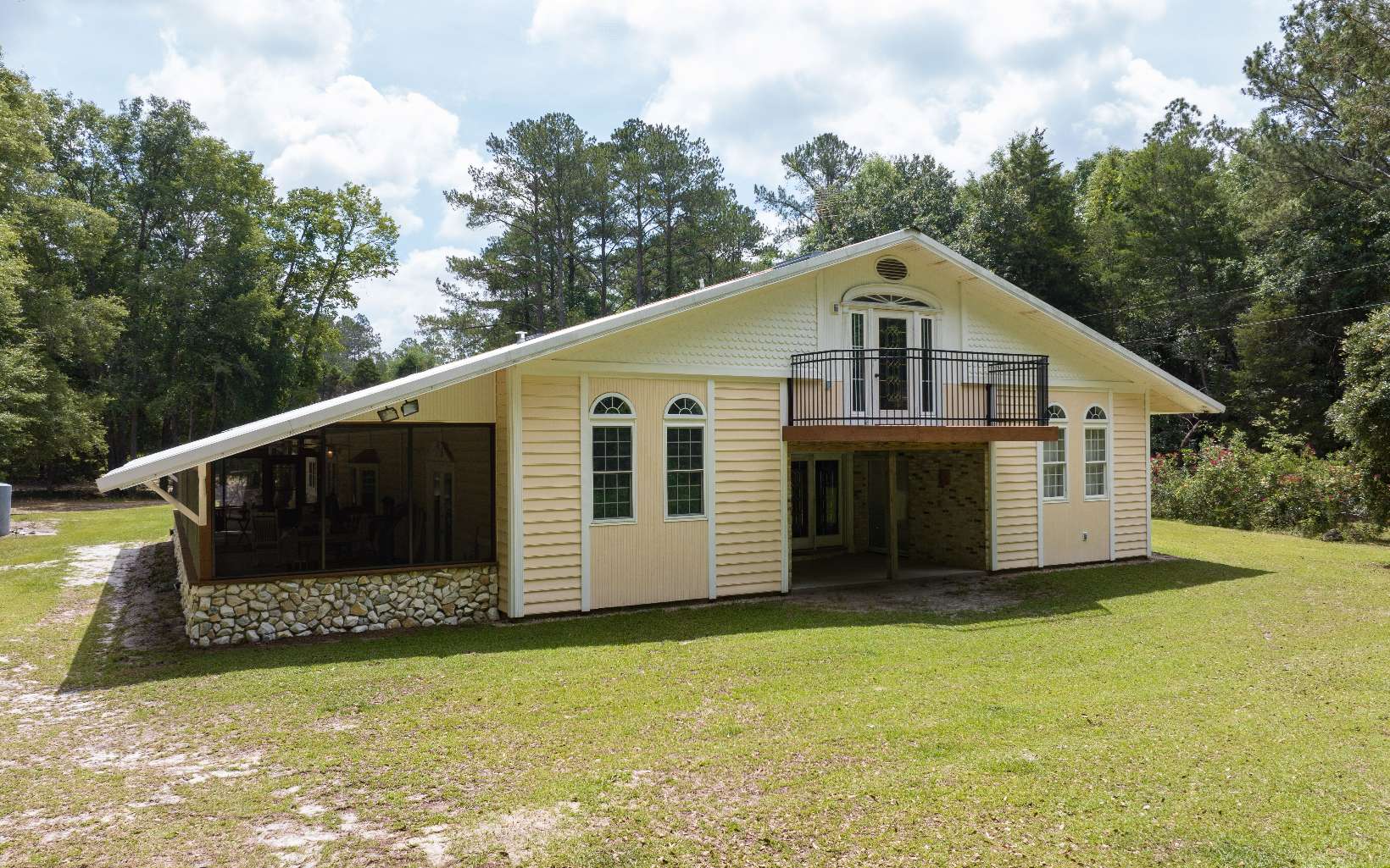 North Florida FL09 Kittyhawk Fly-in Community. 3 Bedroom 2 Bath Unique Hangar Home on a partially wooded, 3 acres parcel of land. This home has an open concept, with vaulted tongue and groove cypress ceilings. Recent kitchen cabinets, granite countertops, appliances and a beautiful large fireplace. The upper loft has a walkout deck for office, or arts and crafts. Massive screened porch for entertaining or working out. Nice extra feature: a full RV hookup next to the hangar. This home is located in a private, secluded air park in beautiful Suwannee County, just minutes from the Suwannee River. Here at Kittyhawk, the residents enjoy their hobbies of flying, building, and restoring their planes or cars without any hindrances. Home 2,900 sf, Hangar 45x60x12, Garage or workshop 40x36x10. Taxi from home to a 4,000ft. Well maintained Grass Runway.