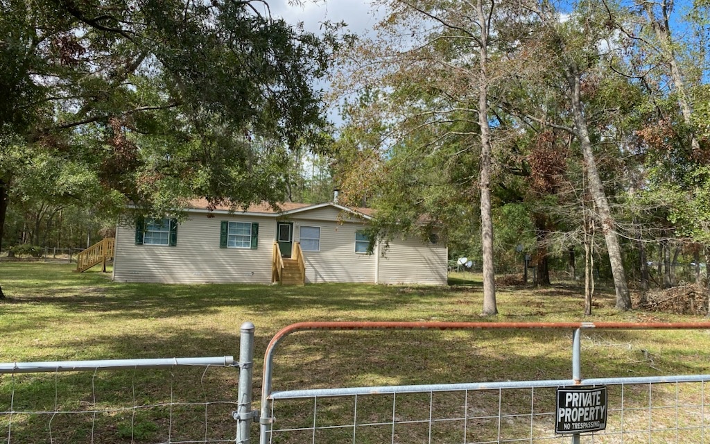 Large triple wide manufactured home on .9 of an acre. This Skyline has it all from rounded corners to large windows. Living room has a fireplace, Master bedroom with extra sitting room, Large bathroom with walk in shower and garden tub. Large Kitchen with island. Large open back deck to enjoy the outdoors on. There is also a shop/garage in the back with 1 roll up door and a walk in door. Close to Suwannee River.