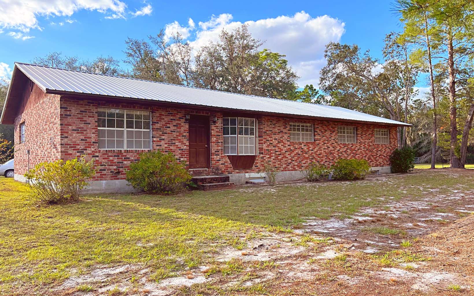 From High Springs take County Road 340/NW 182nd Ave ~17.7 miles to caution light. Turn right on State Road 47 for ~2.9 miles. Turn left onto NE County Road 138 for ~5.8 miles. Turn left on NW 7th Terrace and follow to left on NW 9th Court. Take next dirt road (NW 98th Lane) to the left and follow around until to NE 1st Ave (NW 98th Lane turns into NE 1st Ave) house will be on the right. The driveway runs along the side of the fence.