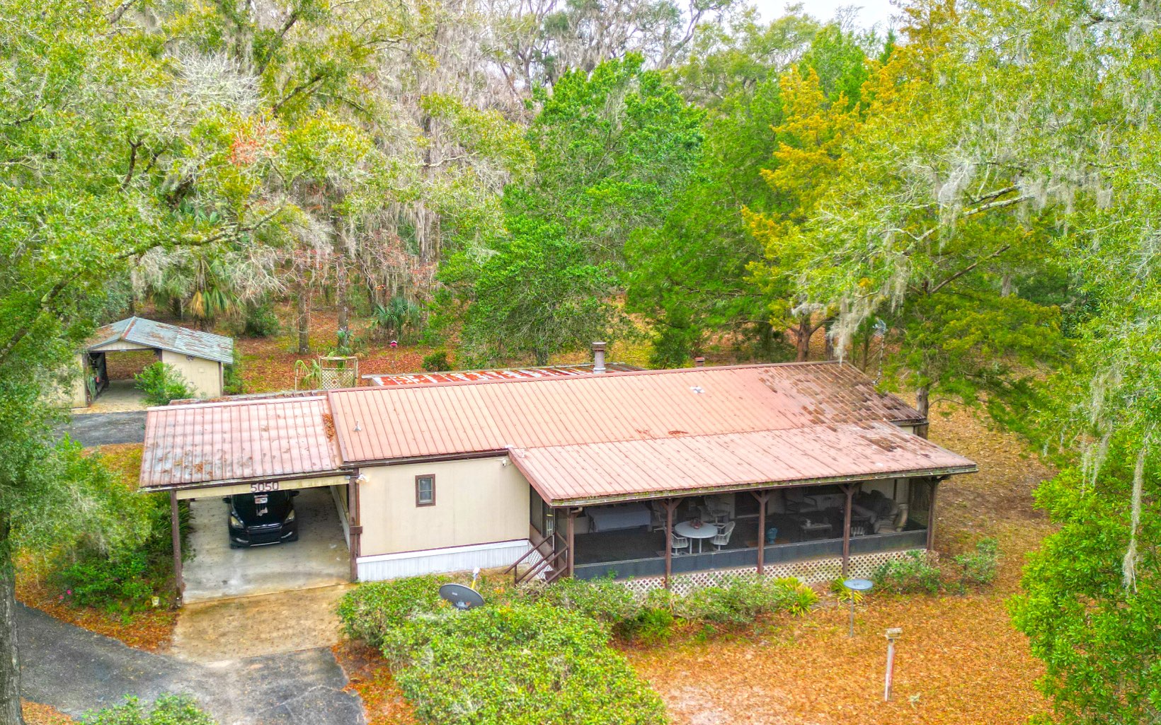 3/2 Bath DWMH on 4.89 ACRES Mgt loan is VA assumable for Veterans Only ! Chiefland, has been well maintained w/attention to detail. MH has had tie down retrofitted to meet Mortgage Lending guidelines at 5 ft apart . Board fence across the front with a Gate. Beautiful tree-lined asphalt circular driveway w/carport, metal roof w/gutters & downspouts, front & rear screened porches, greenhouse, tool shed, pump house, other detached parking w/His & Her's storage sheds, A/C, fireplace, walk-in closets, seperate dining room, laundry room, kinetico, water softener, fully landscaped park-like acreage. Great location only 10 minutes to Super Walmart & 45 min to Gainesville .