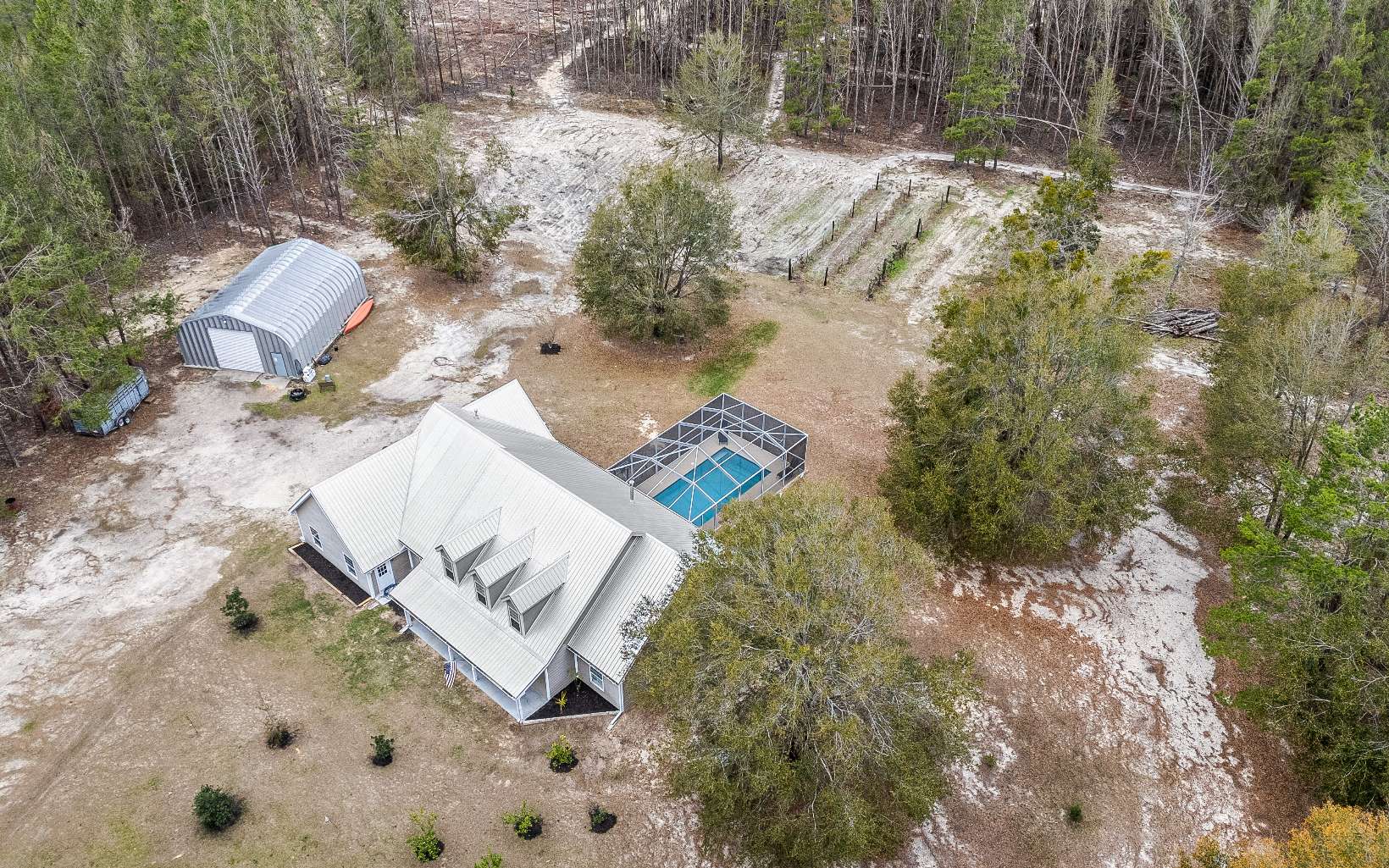 Nestled on 10 acres of serene countryside, this property offers the perfect blend of tranquility and convenience. Accessed via a paved road, you'll enjoy the privacy and seclusion that this location provides while still being easily accessible. As you step onto this picturesque estate, you'll be greeted by the sights and sounds of abundant wildlife, making it a nature lover's paradise. The spacious 2,521 square feet home boasts a climate-controlled attic storage area, providing ample space for your belongings or the opportunity to expand and customize it into additional living space. A highlight of this property is the impressive 30'x40' metal building, offering endless possibilities for storage, workshops, or hobbies. For those warm Florida days, cool off in the inviting inground pool, enclosed within a screened area for added comfort and enjoyment. This property is a haven for wildlife enthusiasts and gardeners alike. You will discover an abundance of fruit trees, including lemon, orange, fig, blackberry, mulberry, and satsuma. Updates and upgrades abound throughout the property, including a new metal roof installed in 2021, HVAC system replaced in 2012, and a new hot water heater installed in 2020. Plus, the 2022 installation of Pennteck Industrial Coating on the concrete floors ensures easy cleaning and durability, adding to the easy cleaning and low-maintenance lifestyle of this amazing property. Fiber Internet coming soon!