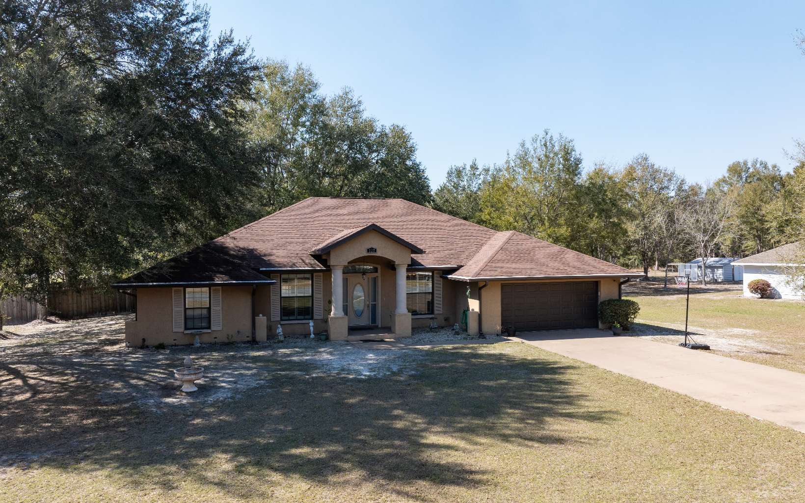 Motivated Seller! Explore this impeccably maintained 4-BR, 3-bath split bedroom home! Upon entering the stunning main house, discover a formal dining room to the right and an ideal office space to the left. Continue through to the spacious living area with sliding glass doors leading to an expansive screened lanai. The sizable owner's suite boasts tray ceilings, an expansive closet, and a luxurious bathroom. Noteworthy are the plantation shutters throughout the main home. Venture to the back of the property adorned with beautiful oak trees to find a separate 1-bedroom, 1-bathroom Mother-in-Law Suite. Very comfortable 2 bay workshop. Enjoy moments of relaxation on both the front and back screened lanais for you and your guests.