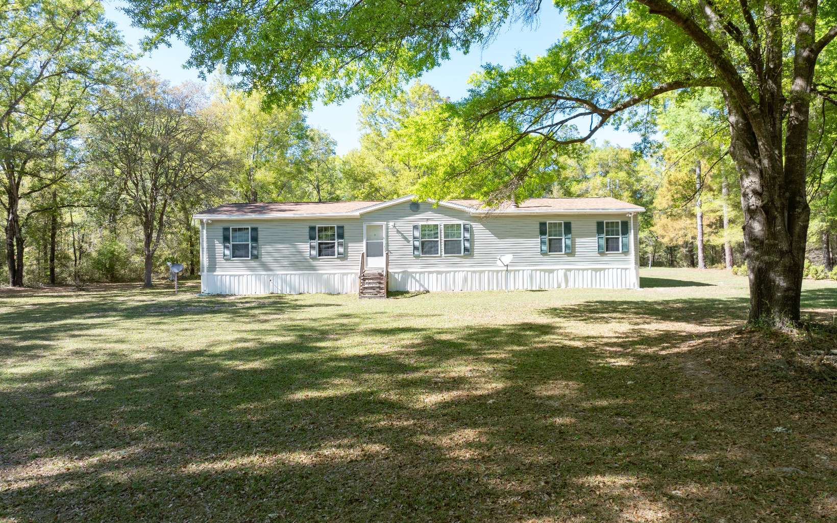 Large DWMH on 12 wooded acres in South Columbia County! New HVAC 03/24, Newer Roof 7/23, Newer hot water heater 12/23. Large open kitchen has walk-in pantry open view of the great room with wood burning fireplace and dining room all together. Split plan with office/desk area and good size guest bathroom with separate shower and vanity area. Master suite features soaking tub, double vanities, walk in shower and laundry shoot. Outbuilding with full insulation and a fenced area for gardening or pets.