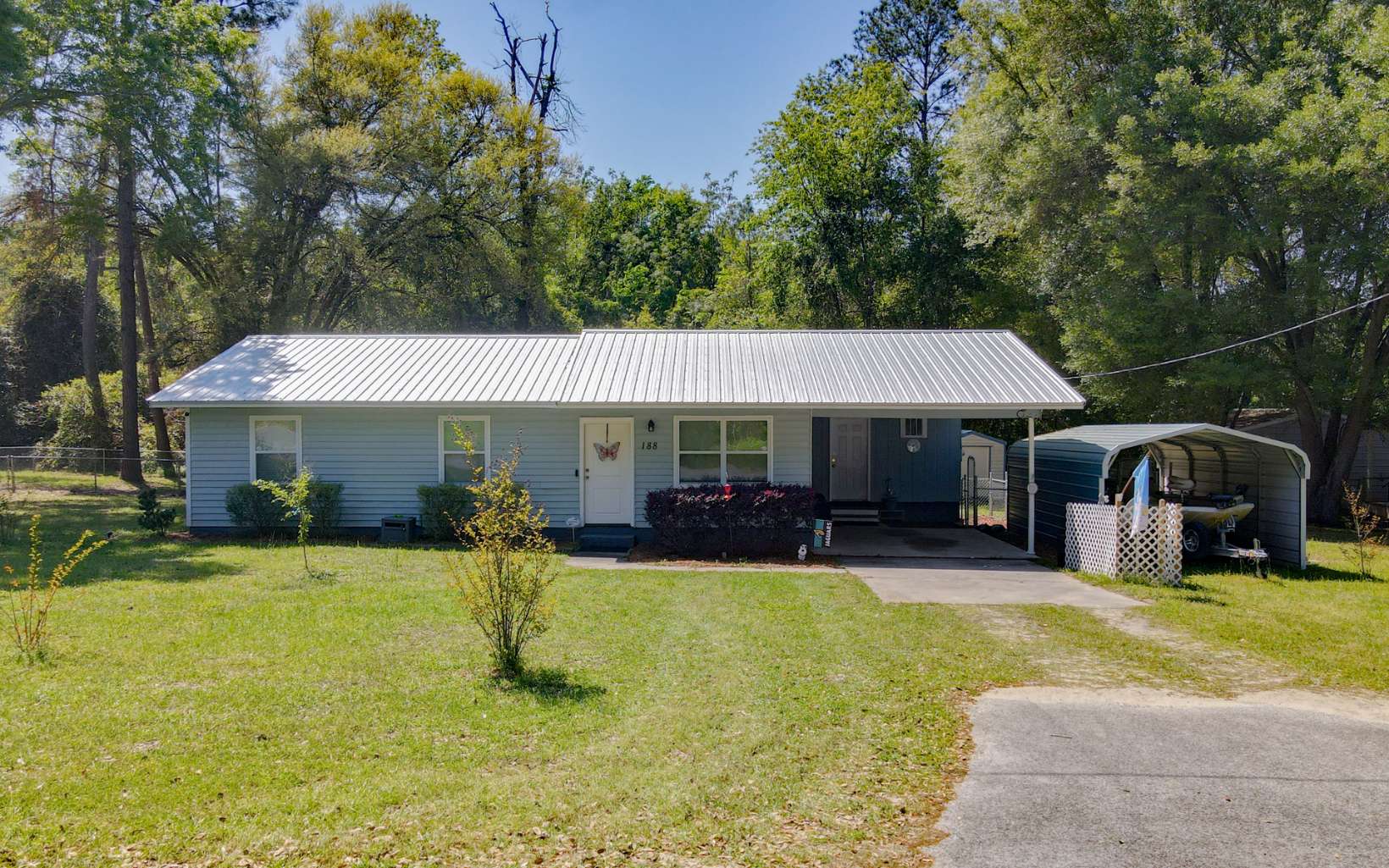 Charming starter home or home perfect for retiree(s) with recently remodeled kitchen. New stainless steel appliances, countertops, flooring and metal roof. All was updated in 2023. Eat-in kitchen/breakfast area allows you to see through to the living room. Detached covered garage and storage building conveys. Fenced in backyard ideal for pets. Located only 3.5 miles from I-10.