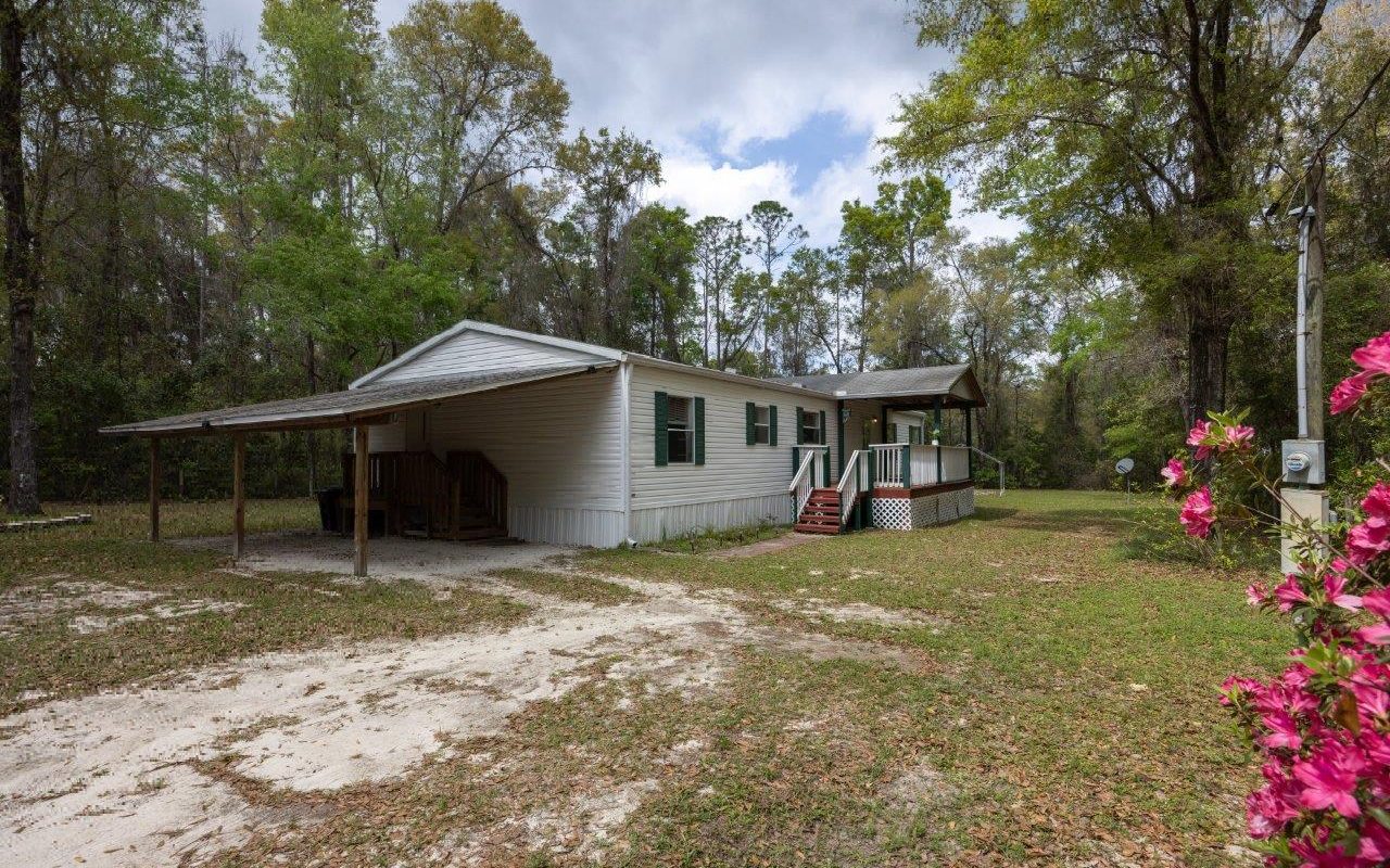 Welcome to this inviting property boasting a spacious layout and an abundance of features for comfortable living and versatile use. Built in 2006, this mobile home offers three bedrooms and two full bathrooms, designed with a split plan to provide privacy and convenience. Upon entering, you're greeted a spacious foyer and the light and bright living area, ideal for relaxation or entertainment. The focal point of the living room is a charming wood-burning fireplace, perfect for cozy evenings. The roomy dining area opens to the island kitchen that is a chef's dream, equipped with ample cabinets for storage and a convenient layout for meal preparation. You will love the separate utility room complete with a washer, dryer, utility sink, and additional storage cabinets.