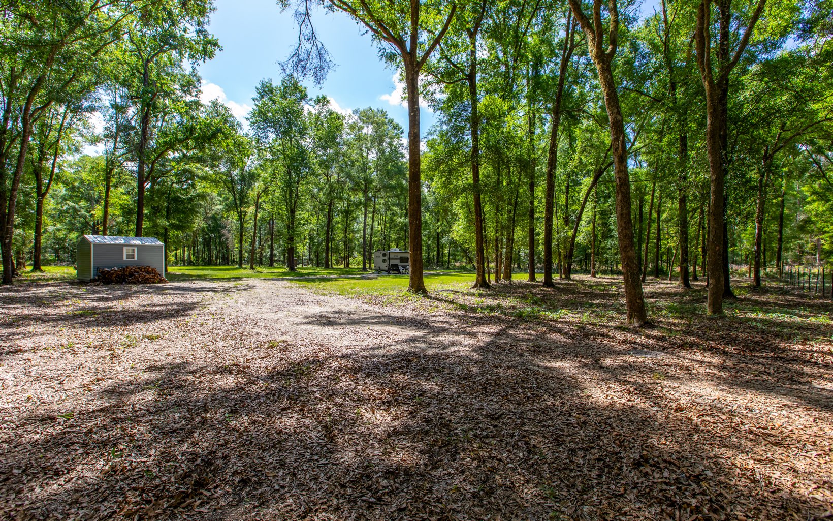 3.99 acres with a 2020 camper and storage shed. This property is turn key- just bring your clothes! Fenced and cleared with 100amp power service, well and septic (large enough for a 4 bedroom home) this acreage is the perfect mixture of cleared acreage and natural woods. Located on a corner lot just minutes from the Suwannee River. No flood zone and minimal restrictions (mobile homes are allowed). No HOA.
