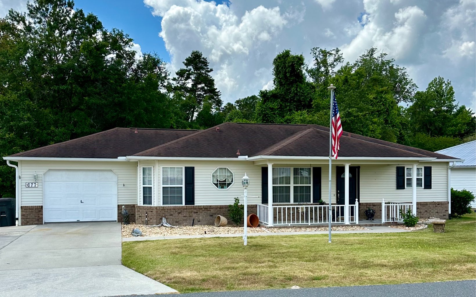 ONLY BACK OF PROPERTY IS IN FLOOD ZONE - NOT HOME! **Welcome to your new 55+ retreat!** This charming home offers the comfort of two master bedrooms, each boasting its own luxurious bathroom and large walk-in closet. Step inside to find beautiful wood floors that add warmth and elegance. The kitchen is a chef's dream, with a Butcher Block pullout and drawers for extra storage, custom cabinets, and a stylish new backsplash. Modern conveniences include a newer microwave and disposal. The home has been lovingly updated with fresh paint inside and out, and a new front door adds to its curb appeal. Enjoy the spaciousness of the home, including a large Florida room with heating and cooling, offering stunning views of the backyard. Step outside to a large covered patio off the Florida room, where you can relax and enjoy the outdoors. For convenience and accessibility, a new handicap ramp with yellow treated wood provides easy entry. Mood lights on the porch create a warm and inviting ambiance. A large 12 x 16 shed outback provides ample storage space. Experience the best of 55+ living with access to a clubhouse and pool, making this the perfect place to call home.