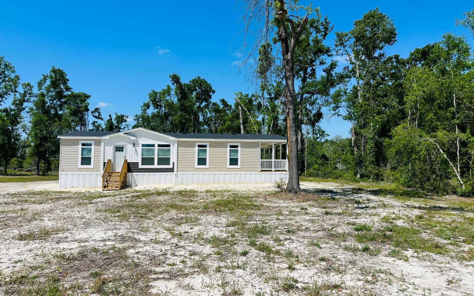 Brand New Cute Country Living 3Bed 2Bath Home with a porch on 1 acre (MOL) near the Suwannee River. This Home features an open floor plan with an island kitchen. The kitchen also feature recessed lights, barn style sink along with plenty of cabinet space plus upgraded appliances. This model also comes with baseboard, chair rail and crown molding the master has his/hers sinks and a walk n shower along with a large walk closet. Lots to see and worth a look