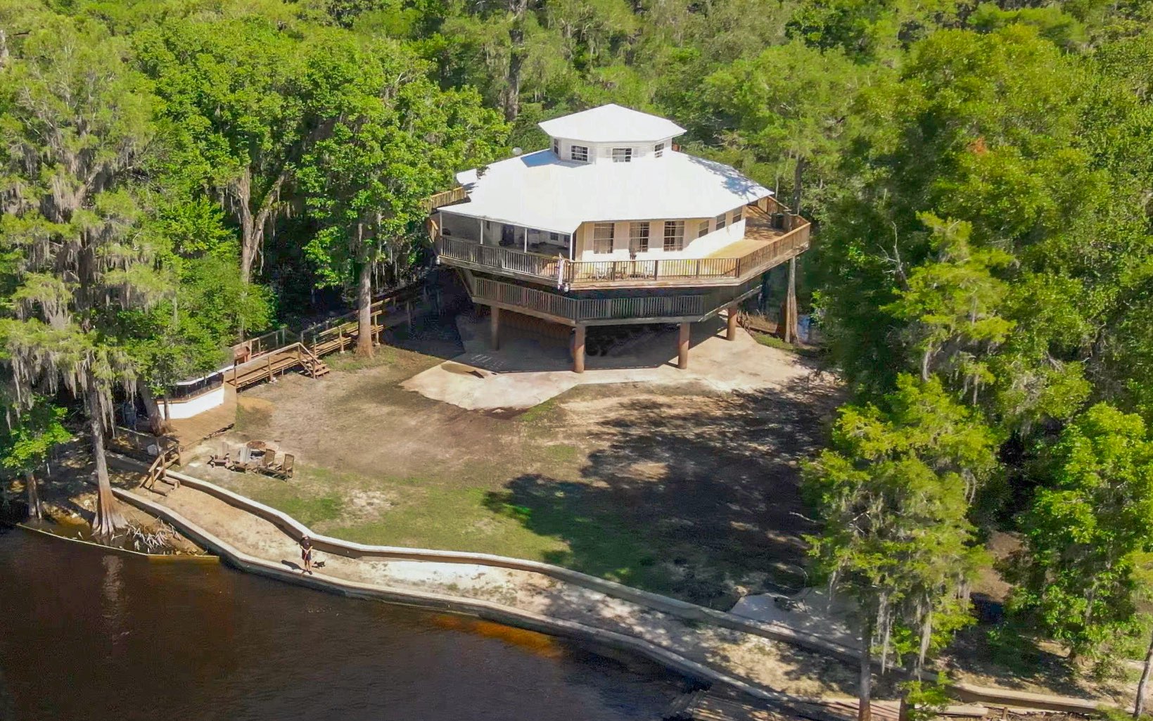 Spectacular riverfront paradise on the Santa Fe River in North Florida. This 5 acre Santa Fe Riverfront property offers amazing views from not one but TWO levels of wrap around porches! The main home features 3BR/2BA, an open floor plan, luxury vinyl plank flooring, large laundry/storage room & so much more! Outside you will find a fully equipped cook shed, fire pit and a double sea wall which helps protect the banks. Looking to earn some income while fishing on the banks? There is a cozy 2br/1ba which is currently an active AirBnb. Guesthouse has wrap around covered porches with a covered walkway to the 3 bay workshop. Workshop also has an apartment for additional guests or rental income. RV Hookups onsite as well. Property is located just minutes from the Ichetucknee Springs/River and the Historic Suwannee River.