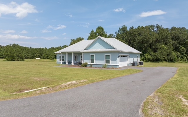 Lovely and solid concrete block/stucco home offers: 3/2 with 2 car garage on 5 sprawling acres with private pond. The convenience of a short distance to town with keeping that country feel. The property features an open concept with a beautiful kitchen offering quartz countertops and stainless steel appliances. The master bedroom is large with 2 walk in closets, an en suite offering double vanity and granite countertops. A nice size washer/dryer mud room with space for folding clothes and storage. Must see!
