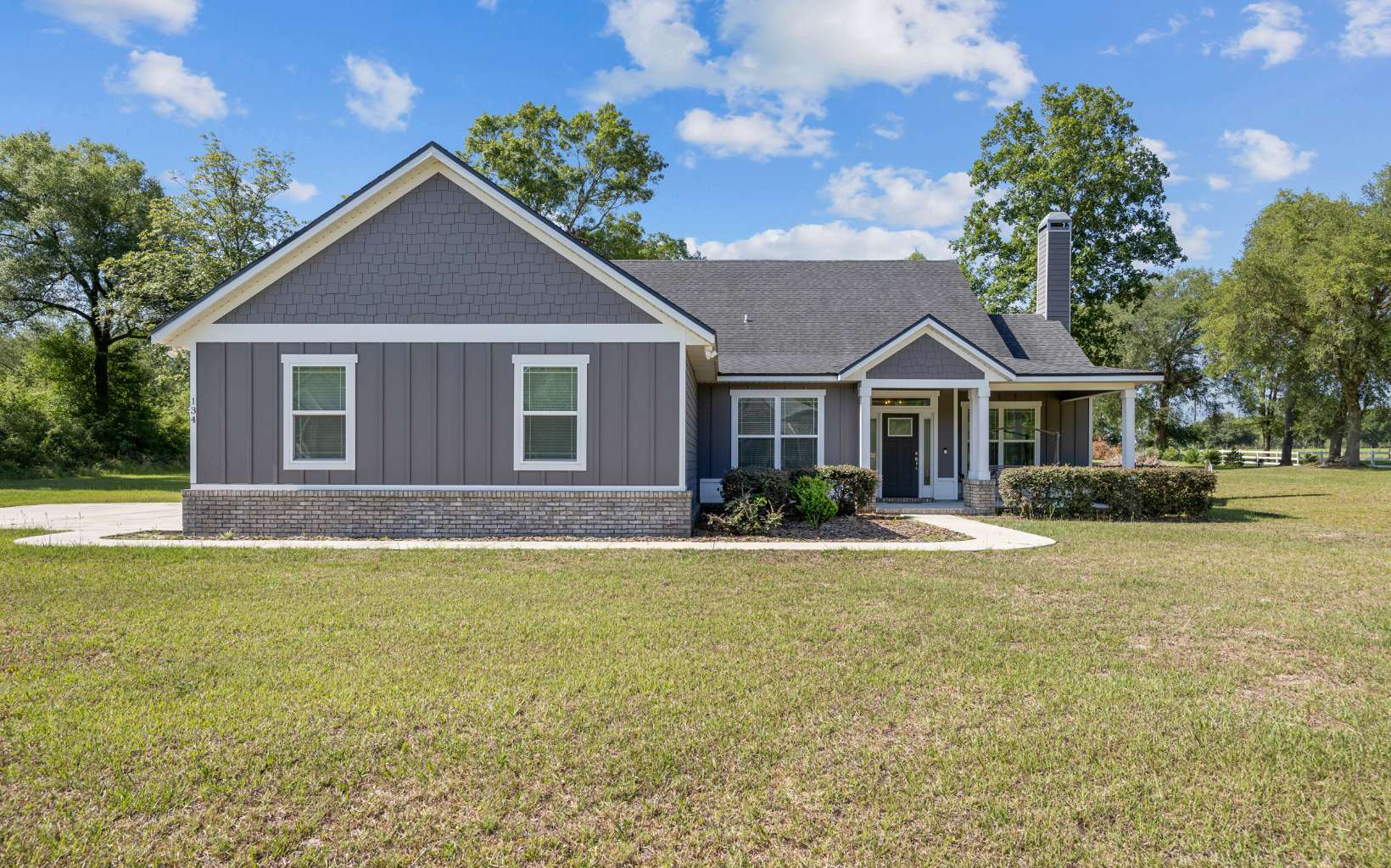 One or more photos was virtually staged (fire shown in fireplace). Gorgeous 4-bed/2-bath turnkey home with all the desirable upgrades on a 2.63-acre corner lot in The Cove at Rose Creek! The 2,174 sq. ft. home features Craftsman-style casing and trim, chair railing, vinyl plank flooring, vaulted ceiling, and split bedroom plan. The property truly exudes refinement and tranquility, both inside and out! Adding to the outdoor appeal are 8 blueberry bushes, 4 Ring flood light security cameras, Ring doorbell, front porch swing, backyard swing set, water hookups running down the fence line, and 3 spigots evenly spaced out from the front to the back of the property, making watering favorite trees and plants a breeze.