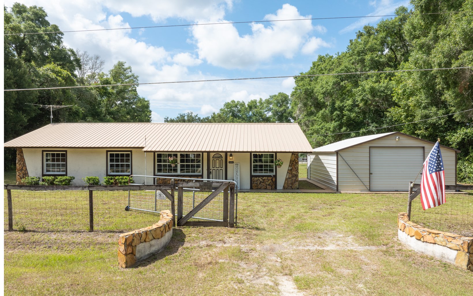 Lovely 3 bedroom, 2 bathroom home nestled in Rolling Ranch Estates in Dunnellon, FL. This home is situated on 4 lots and is fully fenced. Home Features include: Living Room, Large Flex Room, Kitchen, Screened Cook Shed, Large Metal Workshop/Garage, New Roof 2024, Newer HVAC 2022 & much more. Property can be purchased and then back 2 lots split. Minutes from the beautiful Rainbow River. Close to Hospitals, Shopping and other amenities. Call to book your private tour today!