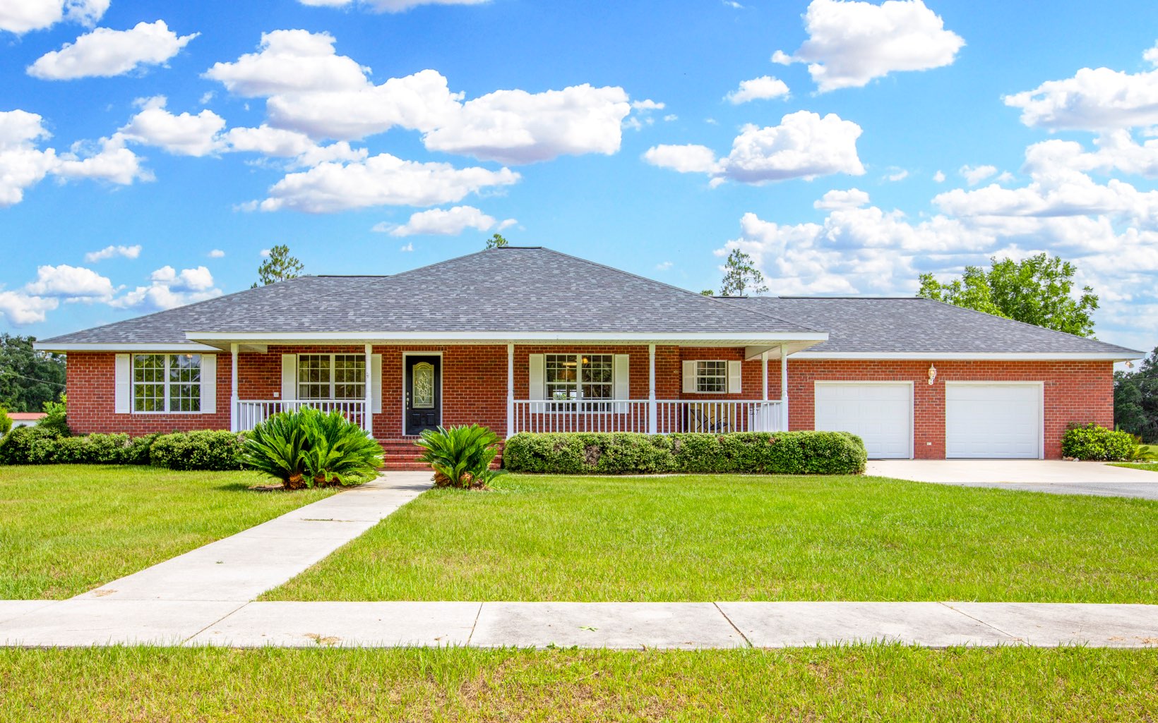 Welcome to country living with this 3-bedroom, 2-bath brick home on 17.99 acres, located just 2.5 miles from downtown Live Oak. The main home has 3 bedrooms & 2 baths, living room, family room, plus an office space with built in shelves. Spacious kitchen with custom cabinets, granite countertops, double ovens & a walk-in pantry! In the dining room enjoy backyard views from the French doors overlooking the back patio. Large master bedroom, walk in closet, bathroom w/ double vanity, private water closet & whirlpool tub. Multiple linen closets offer plenty of storage. The 2-car garage has a shower, sink & more custom cabinets. Just next door is a 2005 singlewide mobile home with 2 bedrooms, 1 bath & new metal roof– perfect for family members or possible rental income. Whole home generator, 20x48 equipment shelter with water/electric, multiple fruit trees w/ approx. 1.5 acres of underground irrigation are just some of the extras this property offers. Acreage is fenced & cross fenced making it ideal for horses or cattle. All water troughs have underground plumbing. Aerial lights in pasture previously used for a lit horse arena. Huge granddaddy oaks and a beautiful half acre pond create the perfect place to call home. Seller may consider owner financing.