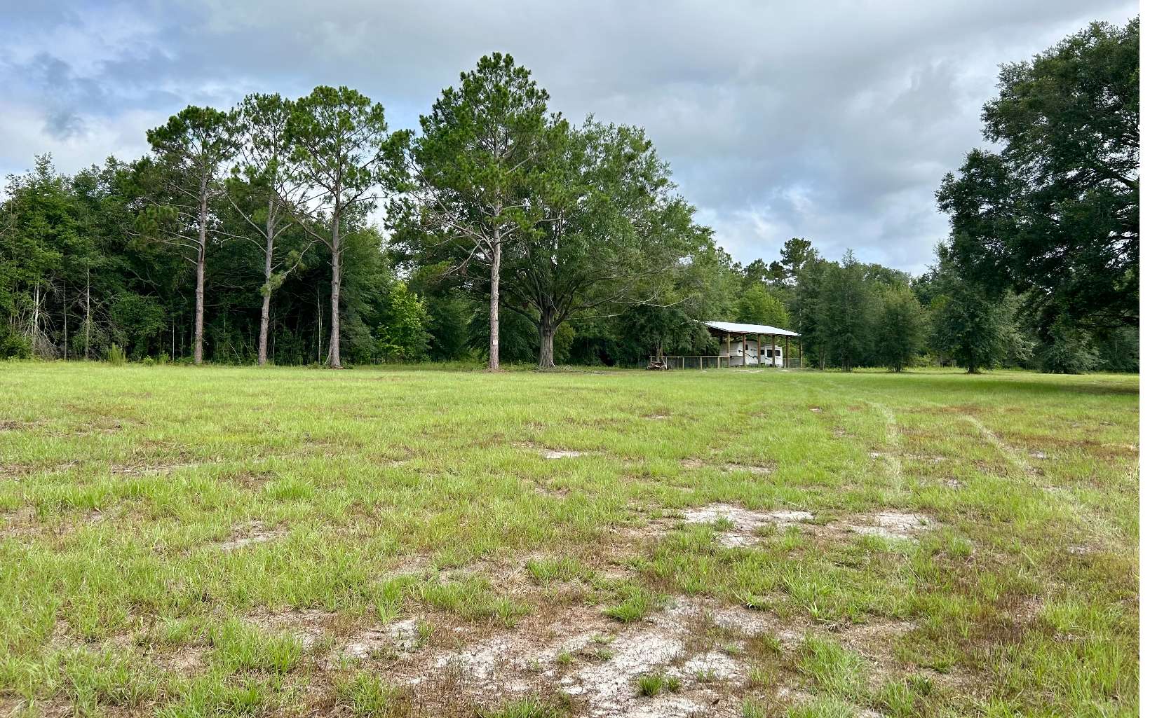 5 acre property with a 50X30 steel truss pole barn and RV included. Paved road, Cleared with New water well. No deed restrictions. Horses, cows, chickens, pigs and guns welcome. 15 minute drive to downtown Live Oak, FL. Seller also has architectural blue print for site built home that he will sell.