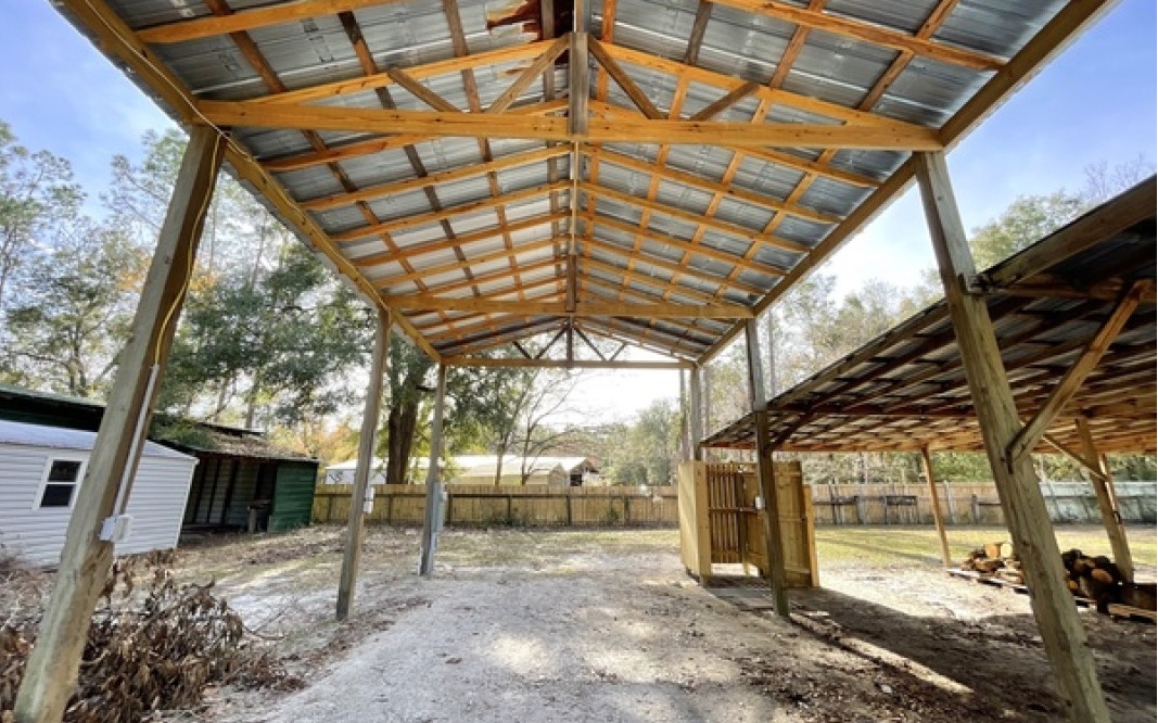 Only 6 mins from Itchetucknee Springs! This property includes: Large Garage/Workshop 36 x 25 : Smaller Metal Shed 10 x 24: Covered RV Spot 40 x 18 : Attached 3 Bay Carport 45 x 24: Brand new well could be added, but there utilities are already in place. Outdoor Restroom & Shower: Build Ready: This lot is ready for you to build your dream home or place a mobile home on it.