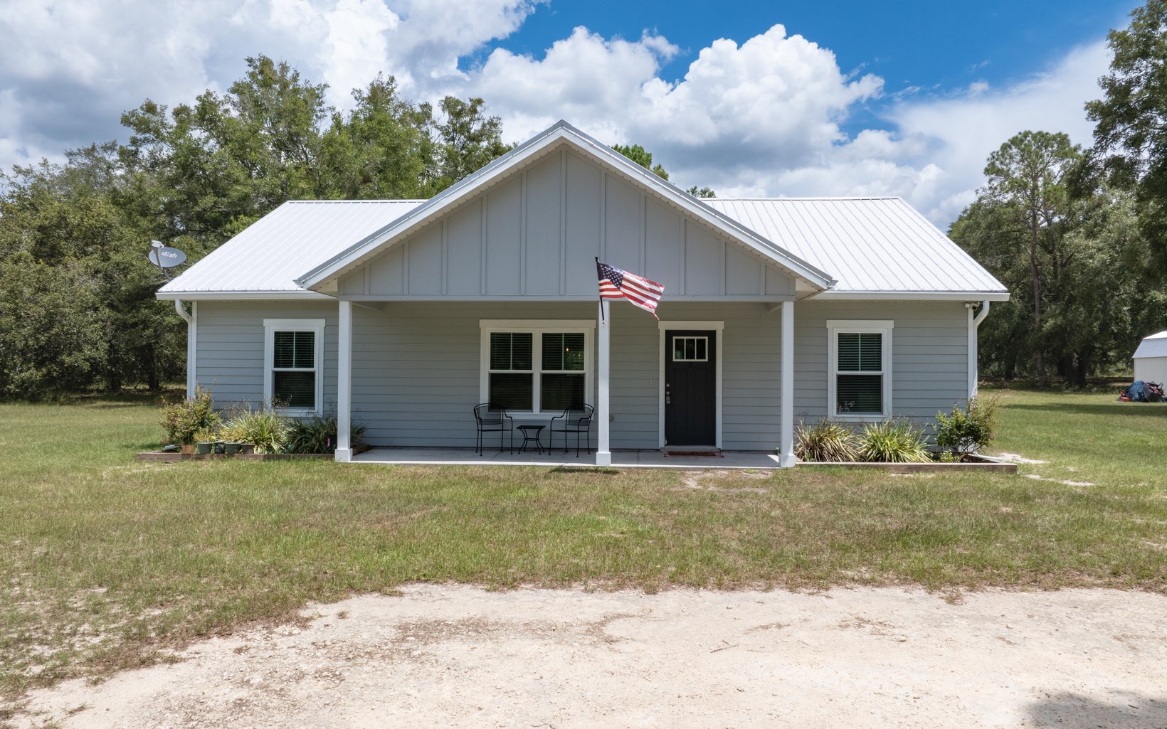 Welcome to your serene retreat on 5 peaceful acres! This 2021 build home offers a sanctuary of modern comfort and country charm. Inside, enjoy vaulted ceilings, luxury vinyl flooring, and an inviting open floor plan with a separate interior laundry room and a convenient split floor plan for added privacy. Outside, the home boasts a durable metal roof, a welcoming front porch perfect for relaxing evenings, and a versatile 10x16 shed with electrical hookup, ideal for storage or as a workshop. The property is fenced around the perimeter and the home features 6" seamless gutter. Don’t miss this opportunity to own a slice of tranquility - schedule your showing today and experience the beauty of country living firsthand!