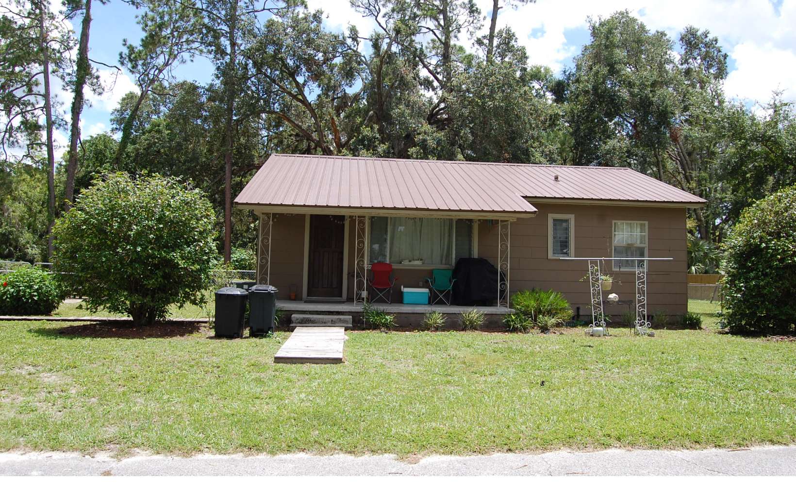 Lovely 3BR/1BA home on a 0.54 ac lot in the heart of Live Oak. The home boasts of updated bathroom-2024, new hot water heater-2021, new painted metal roof-2020, new AC in 2015 that was maintained and ducts cleaned in 2024. Back yard is fenced with almost .25 acre of wooded area behind fence....plenty of room to expand the back yard! Seller does have survey from 2021. Damaged areas of fence are being repaired.
