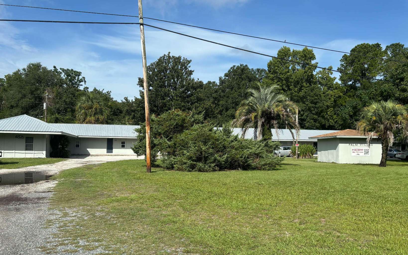 South US 441 to Racetrack road, Palm Villa apartments are to the right.