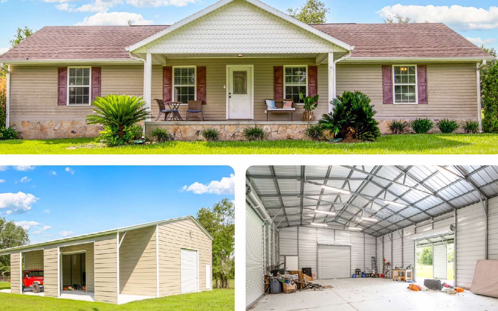 VERY MOTIVATED SELLERS! *Home is back on the market due to buyers financing falling through. Welcome to this charming country home nestled on 4 fenced acres with paved road frontage. This property offers a spacious 3-bedroom, 2-bathroom home with a total of 2,210 square feet. The heated living space encompasses 1,560 square feet, featuring an open floor plan that is perfect for comfortable living and entertaining. Stainless steel appliances and a gas stove make the kitchen a perfect place to cook up your favorite meals. Fiberoptic internet is also an added plus. Indulge in the beauty of the outdoors on your full-length back porch with a built-in bar and TV area while the front porch offers some of the most beautiful Florida sunsets you'll see. Each bedroom has large closets, and the primary bedroom features a walk-in closet. Rest assured with the durability of a new roof installed in October! Addition to a shed with electricity, the property includes a 30 x 50 building boasting 1,500 square feet with electricity installed. Three bay doors open up to a covered, concrete lean-to, offering valuable workspace for all your needs. Embrace the peace and tranquility of rural living with the convenience of a chicken coop and a fenced area for your pets or small farm animals on the premises. Come and explore this property to make it your home today.