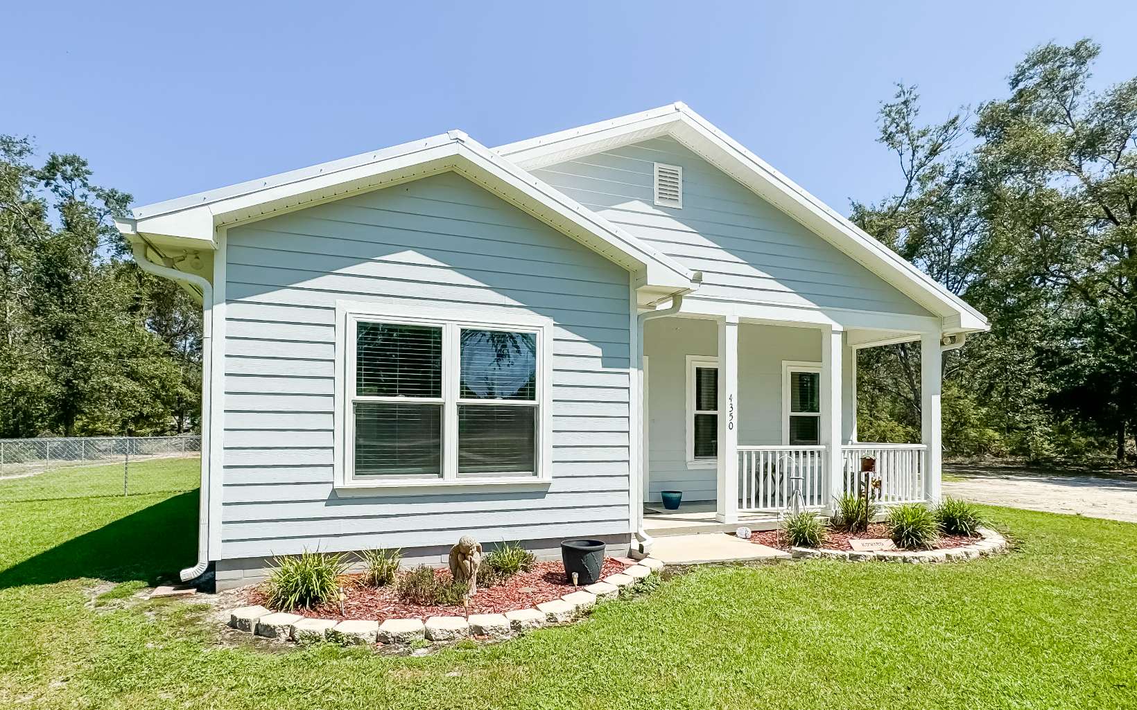 Nestled on a peaceful 1-acre lot, this like-new 2-bedroom, 2-bath home offers a perfect blend of modern comfort and country charm. The open-concept kitchen, dining, and living area create a spacious and inviting atmosphere, complemented by a welcoming front porch and a back patio ideal for relaxation. This well-constructed home boasts 2x6 walls, a durable metal roof, and stylish Hardie board siding. Built on a concrete slab with a stem wall, it offers excellent structural integrity. Designed with energy efficiency in mind, this home ensures lower utility bills and a comfortable living environment year-round. The fenced backyard provides ample space for outdoor activities, while the paved road frontage ensures easy access. Enjoy proximity to Twin Rivers State Forest, featuring equestrian and hiking trails, seasonal hunting, and recreation, as well as Madison Blue Spring State Park, renowned for its first-magnitude spring perfect for swimming. Additional 1-acre adjacent lot is available for purchase for $18,500, giving you a total of 2 acres with the home.