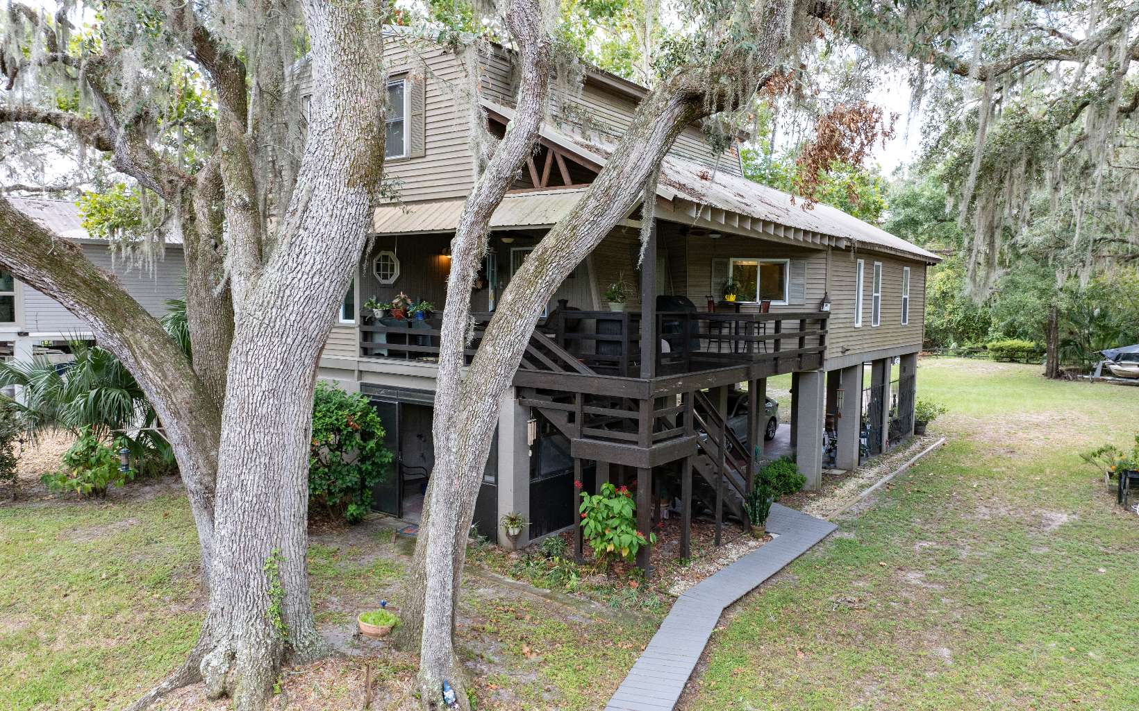 Charming Riverfront Retreat-Situated along the historic Suwannee River, this unique two-story home offers the perfect blend of natures best with the convenience of being just minutes from downtown Branford. The home's standout feature is its breathtaking stained glass, which adds a touch of artistry throughout and frames stunning views of the river. This cozy yet spacious home boasts a functional layout with bedrooms and baths on both levels, providing flexibility and comfort. The well-appointed kitchen includes stainless steel appliances, a breakfast bar, and a wine cooler, ideal for both everyday living and entertaining. Step outside to enjoy the serene outdoors, where a floating dock offers easy river access for boating or fishing. Additional outdoor amenities include a firepit for cozy evenings, a garden area, a greenhouse, and even an elevator for convenience. The property also features an outdoor shower, a shop area with a half bath, and is within walking distance to a nearby boat ramp and spring.This riverfront gem is a rare find—offering tranquility and a touch of rustic charm, all within close proximity to town.