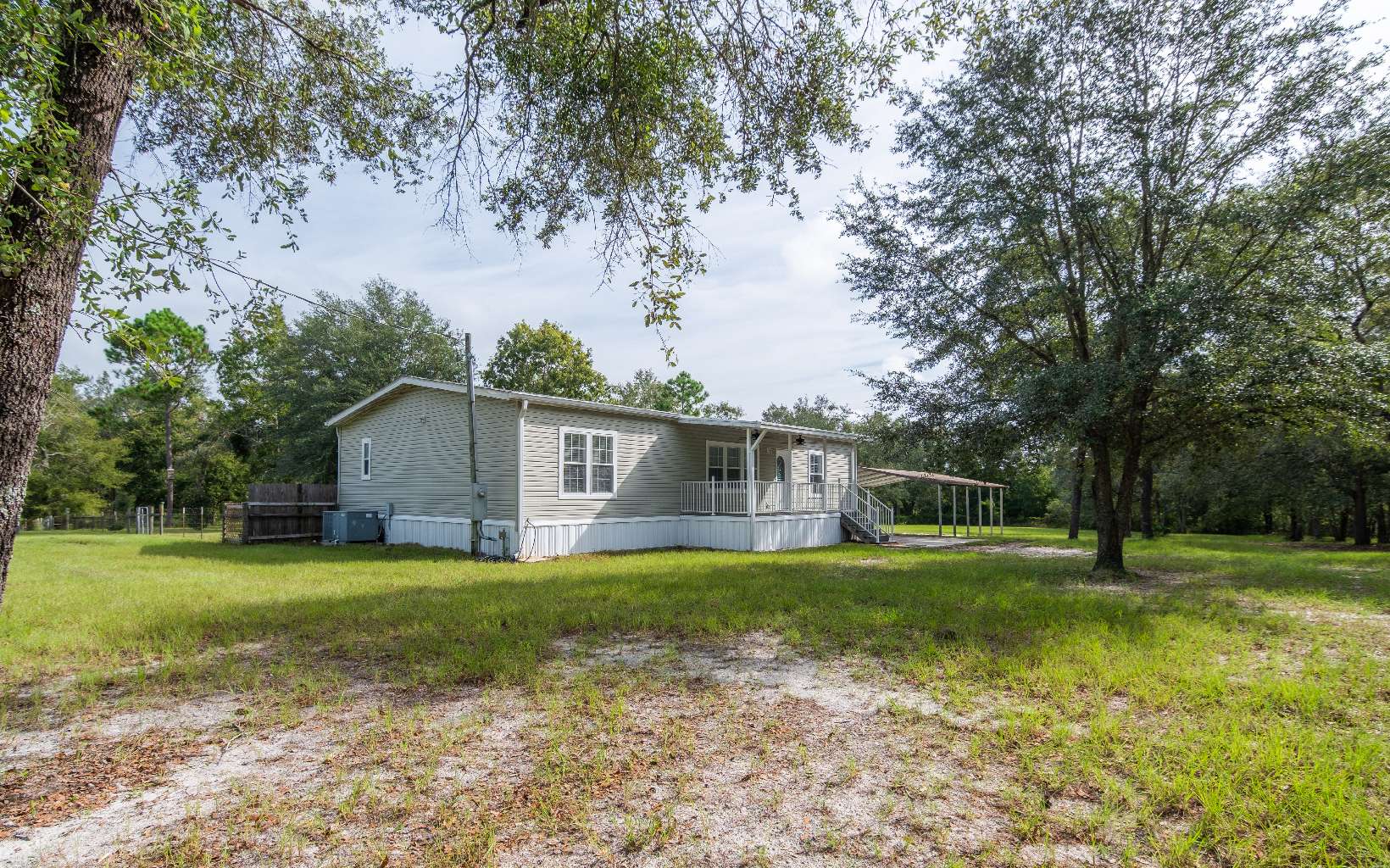 PEACEFUL, QUIET, AND SECLUDED 20 ACRES in beautiful Suwannee County, FL. Jacobson custom built XL-3 BR 2 bath 2012 mobile home. 9 foot ceilings, Walk-in closets, walk-in shower in master bath, huge walk-in pantry/storage, open front porch (8x20), sliding glass doors open onto screened back porch (10x30). Both porches are composite built. Totally private, double fenced on the interior 7 of the twenty acres. Detached metal carport. 3- Large steel metal barns: 22x60 workshop/storage (100amp electric, concrete floor, ceiling fans/lighting 25x30 dirt floor- half enclosed, half open 25x42 cow barn- 18x25 concrete with wooden fencing A total of 9 enclosures including a chicken yard/coop, 2 horse/no-climb fenced pastures with another metal building on concrete. Shipping/storage container: 40 feet long and 9 feet tall. Winco 12K portable generator (gas or propane powered) with electric connection to the house. Naturally wooded front and back acreage (6 acres in back) for hunting, hiking, riding, etc Entire property is high & dry. NO HOA'S, NO RESTRICTIONS !!! Ready for any type of livestock, plenty of room for gardening, hobby farm or Homesteading. Must see today!
