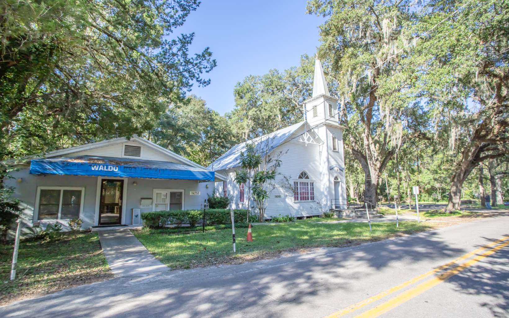 Welcome to the Historic Episcopal Church Sanctuary, a significant architectural landmark constructed in 1884, and the former Episcopal rectory that is situated next to it in the heart of town and currently owned by The City of Waldo. It's prime location and historical value makes an excellent opportunity to house retail or wholesale merchandise such as antiques with the owner being able to reside next door to the business. The former rectory was converted into an Alachua County Library brand some years ago with many upgrades. The space could easily be remodeled back to a residence or additional business space/ This complex would be an ideal venue site with not only a chapel area but ample space for receptions in the former rectory. There is an adjacent paved parking area that is part of the sale. Conveniently just 2 blocks off of SR 24 & 3 blocks from US HWY 301!. Waldo zoning permits what they call ''Mixed Use'' in this area which allows business and/or residential development.