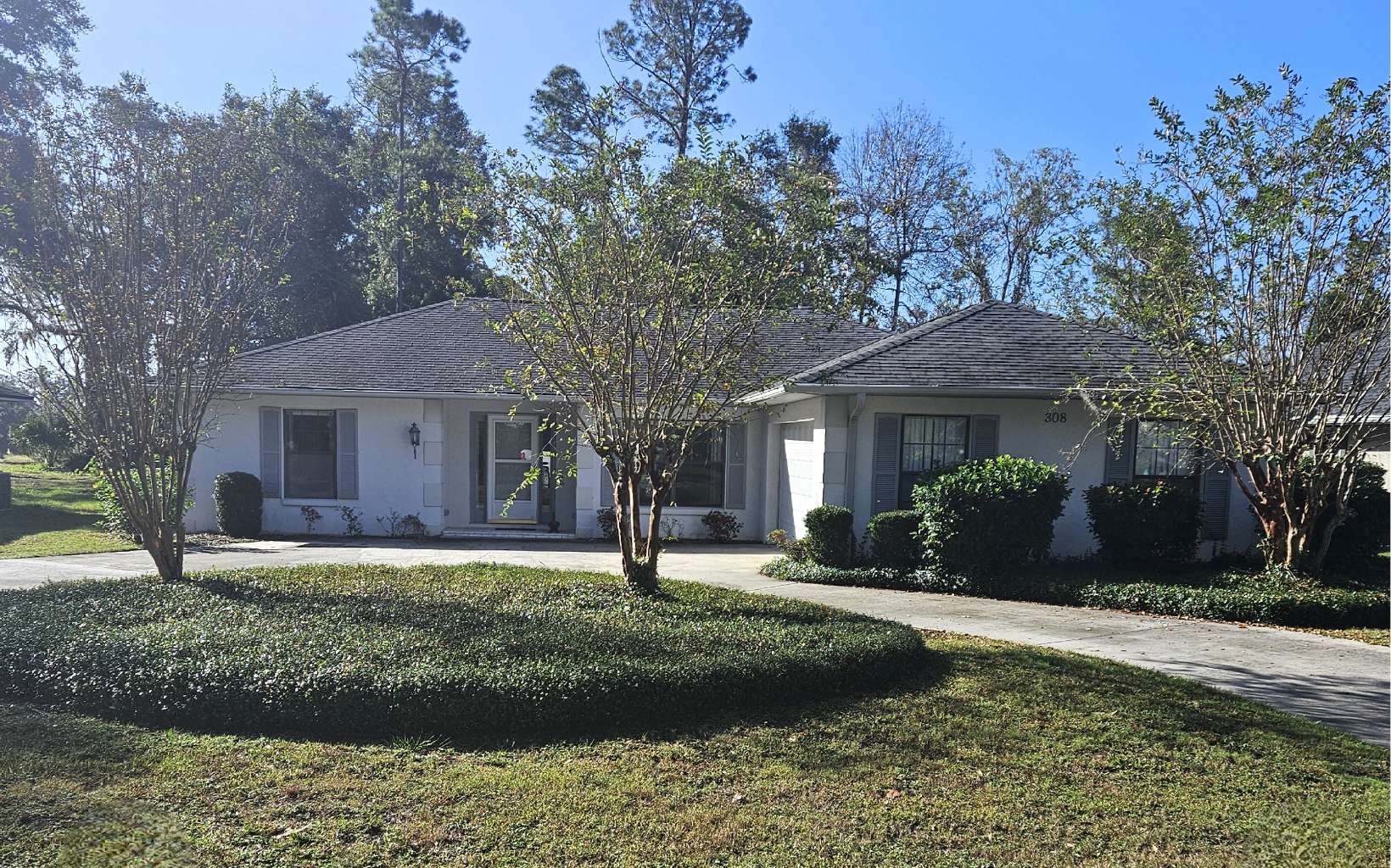 Attention golf lovers! This 3-bedroom, 2-bath home offers the perfect blend of comfort and convenience. Even if you're not a golfer, you'll love the spacious layout and serene setting. Step out your back door and enjoy a round of golf with stunning views. The beautifully landscaped yard features a concrete driveway, adding to the home's curb appeal. Inside, you'll find over 1,600 sq ft of living space, including vaulted ceilings in the living room, an enclosed garage, and a peaceful screened back porch perfect for relaxing. Don't miss this incredible opportunity to own a home in this tranquil golf community!