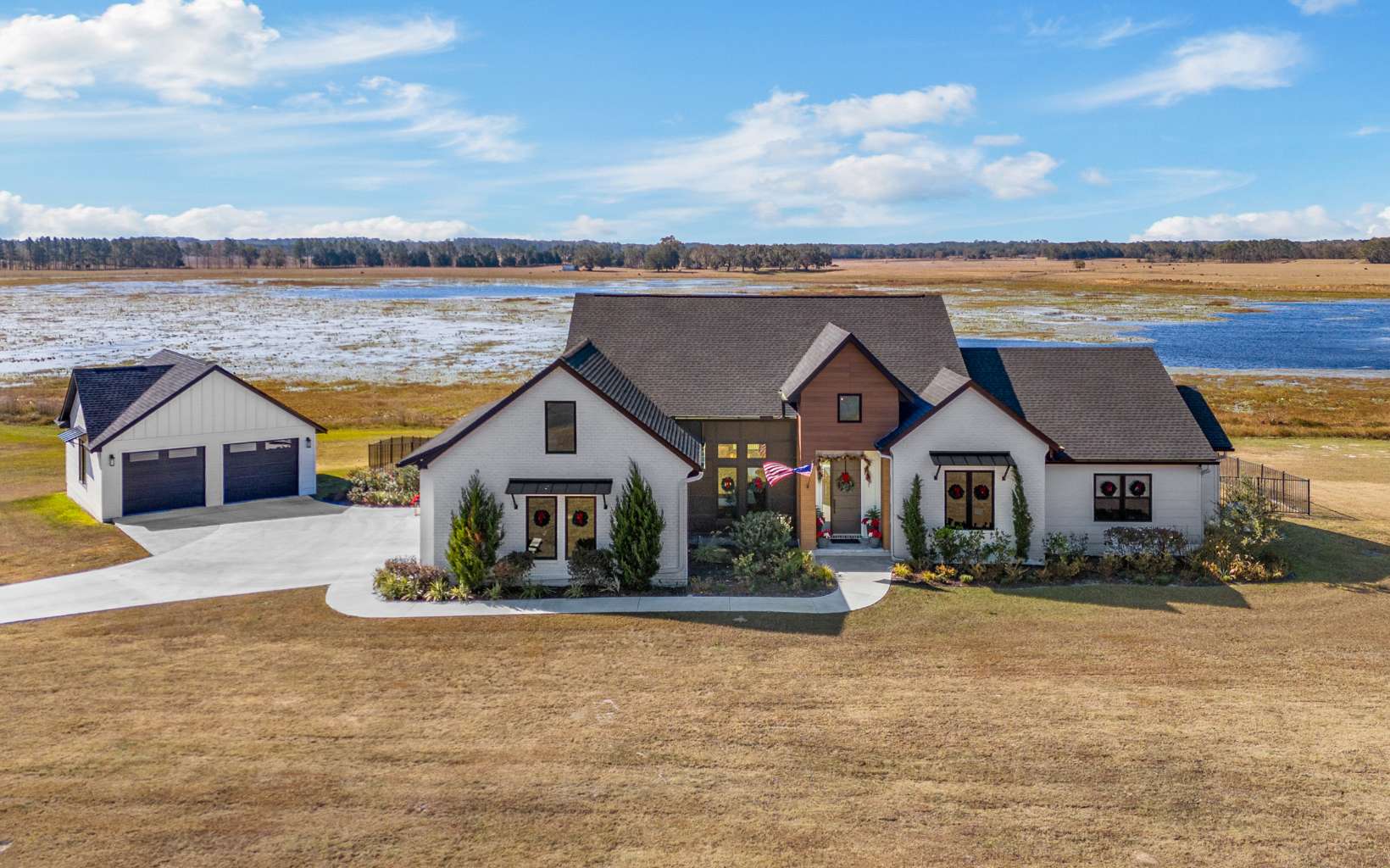Stunning French Modern Lakefront Estate on 15.39 Acres. Experience the epitome of luxury living with this extraordinary home nestled on the tranquil shores of Lake Wilson. Set on an impressive 15.39-acre lot, this property offers unmatched serenity, breathtaking sunsets, and panoramic lake views from the 34-foot covered back porch and floor-to-ceiling glass doors. Boasting 3,003 sq/ft of living space this impeccably crafted home is both spacious and thoughtfully designed. The home features soaring 11-foot ceilings throughout, an open floor plan, 3 bedrooms with an optional 4th studio/bonus room, and a dedicated office for remote work or creative pursuits. The primary suite is a retreat in itself, offering 12-foot-wide walk-in closets, while the two guest bedrooms include walk-in closets and share a Jack and Jill bathroom. A laundry/mudroom with a built-in dog bath ensures convenience for pet owners. The gourmet kitchen is a chef's dream, equipped with a 48” Wolf dual-fuel range with gas cooktop and electric double ovens, a Cove dishwasher, a Bosch refrigerator, and a walk-in pantry. Entertain with ease or enjoy intimate meals with the backdrop of stunning lake views. Additional features include a fully fenced backyard, a detached custom-built 2-car garage (in addition to the attached 2-car garage), and energy-efficient upgrades such as a 20 SEER Trane heat pump, with average electricity bills of just $156. A 22KW whole house generator will convey.