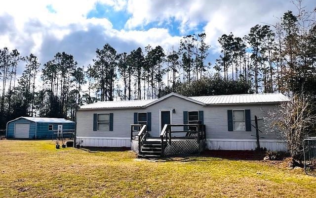 3 Bd/2 Ba home situated 5 beautiful acres ON A PAVED ROAD! This split plan home features a welcoming open deck on the front and a screened porch on the back and metal roof! The home boasts a large living area, dining room, and updated shower in the 2nd bath. Luxury vinyl flooring is throughout the home. The lusciously green property features a a large metal utility building with concrete floor and a smaller pump house. The property has field fencing on the perimeter and a large, chain link fenced yard for kids and pets. Behind the home is a cleared pastured area that could graze horses, or other livestock. Come experience the country life, all while enjoying the convenience of being close to town! Located in Gilchrist County with low property taxes and "A" rated schools. Call today for more details!